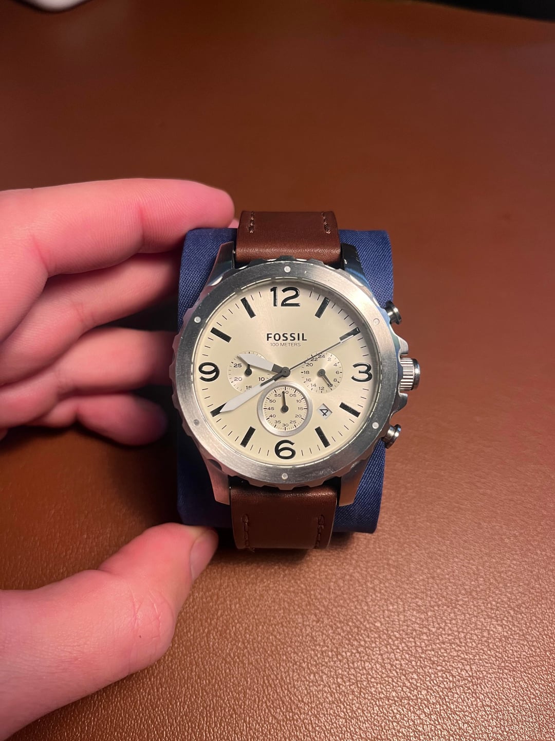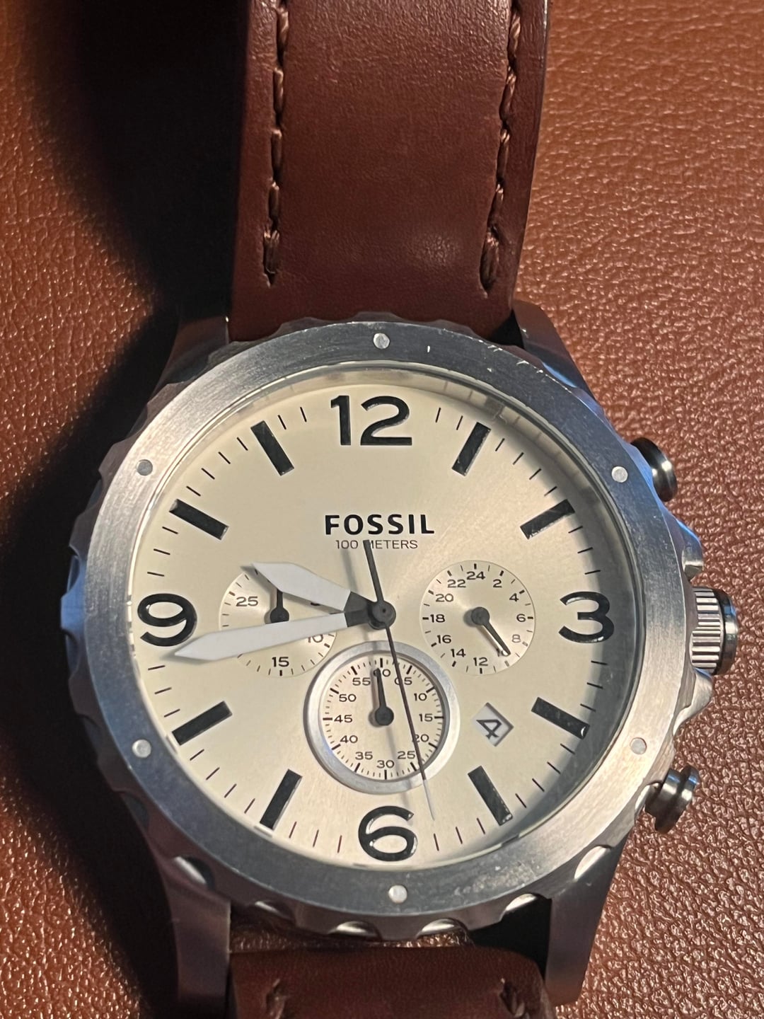 Fossil JR1473 in good condition. Men’s chronograph watch – brown leather strap, silver dial Price: I’m asking $79 Shipping & payment: • Ship via USPS • Payment via Paypal or Venmo