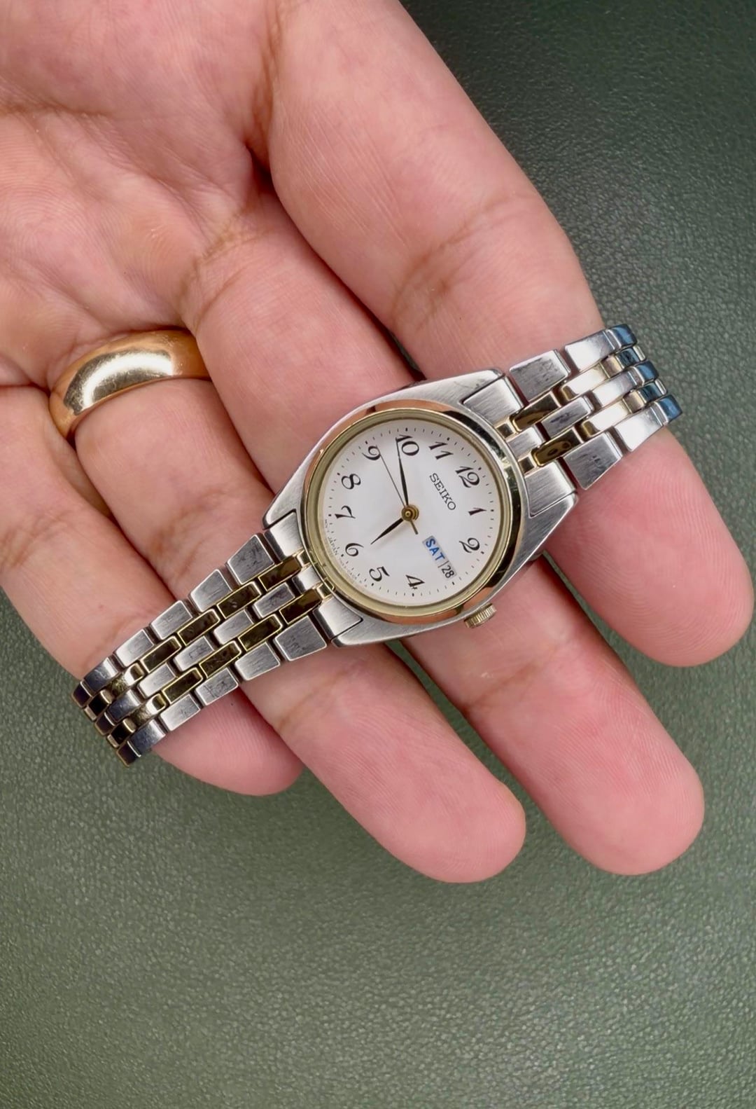 Ladies Seiko 7N83 Two-Tone -Details: A beautiful ladies two-tone Say-ko in good condition! See photos for reference. This piece is excellent for any lady looking to up their style or make a statement! Makes a great gift for a special lady in your life too! New battery installed. -$99 shipped -Case Size: 23mm -Movement: Quartz -Timestamp: https://imgur.com/a/05gq1Sf -Location: Downtown Los Angeles -I accept Venmo, CashApp, Zelle, and PayPal (+4% if using G&S) -IG: ColeccionDeLosSantos -TikTok: Chris.DeLosSantos