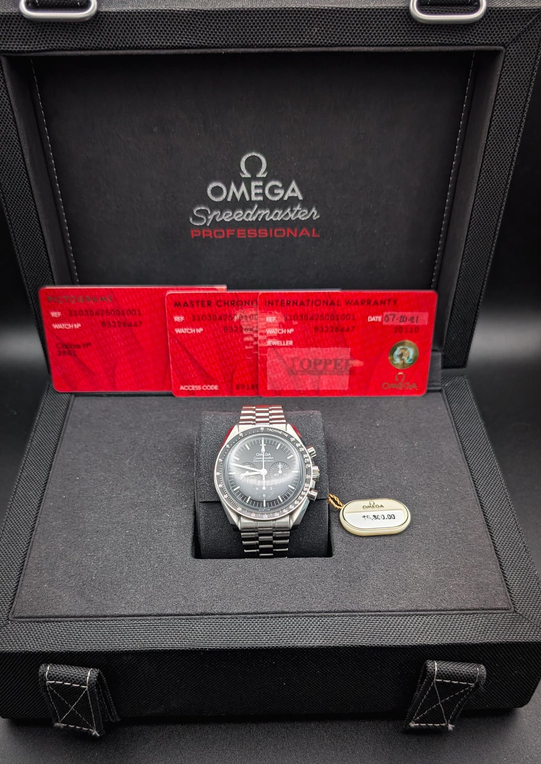 Selling a full set example of Omega's premier sports model and the pride of its collection, the legendary Speedmaster. This is the version closest to the original taken to the moon- Hesalite case with Omega's flight certified text inscribed on the case back. It also features the manual wind 3861 movement with 50 hours of power reserve and the beautiful new bracelet with quick adjust. This set comes in excellent condition with the full warranty active. This watch is one of my favorites and truly deserves it's status as one of the most iconic watches in history. Pick it up today for $5350 shipped to your door Brand: Omega Model: Speedmaster Pro 3861 Hesalite Full Set Reference: 310.30.42.50.01.001 Case Size: 42mm Year: 2021 Comes as: Full set with watch, outer and inner black boxes, Oct 2025 warranty card, chronometer and pictogram cards, manual booklet, hang tag, links, cleaning cloth Condition: Excellent Price:$5,350 Image Gallery: [https://postimg.cc/fVDXWqm0](https://postimg.cc/fVDXWqm0) Timestamp: [https://postimg.cc/fVDXWqm0](https://postimg.cc/fVDXWqm0) Open to trades or purchase of: Modern Rolex, Tudor, Omega, Cartier, Breitling, Grand Seiko, IWC, Zenith. Payment Methods: Zelle or Wire. Paypal FF, Venmo and stable currency crypto available for established buyers