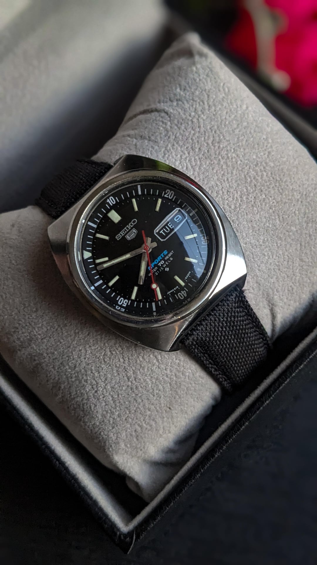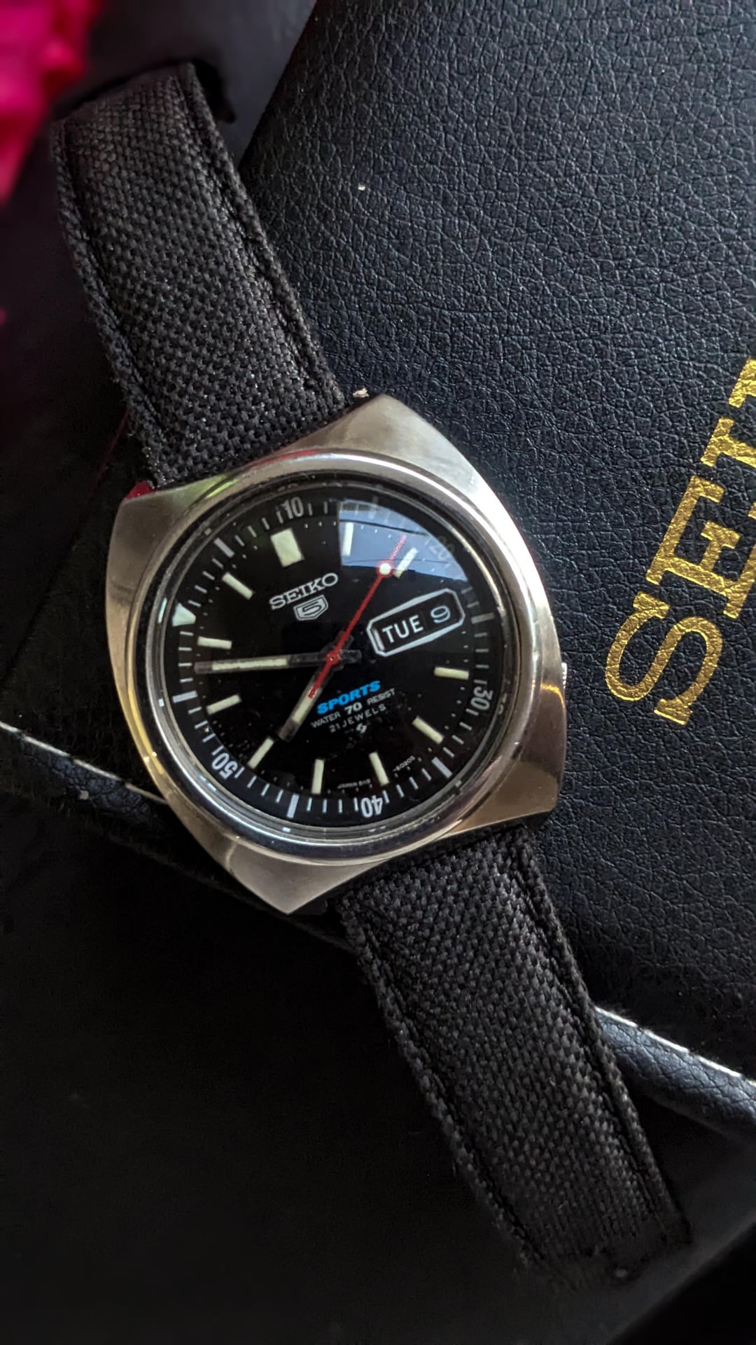Hello Watchfam , Selling a Seiko 5 sports automatic watch which is also called Rally Diver watch have a reference number of 6119-6023 . Watch works well and overall good in conditioner . Watch comes with an aftermarket strap and box . watch features day date function . dial size of the watch is 40mm approx price $290 Timestamp : https://imgur.com/a/zuvcE0Y ✅ Comment before sending dm ✅ Delivery through FedEx