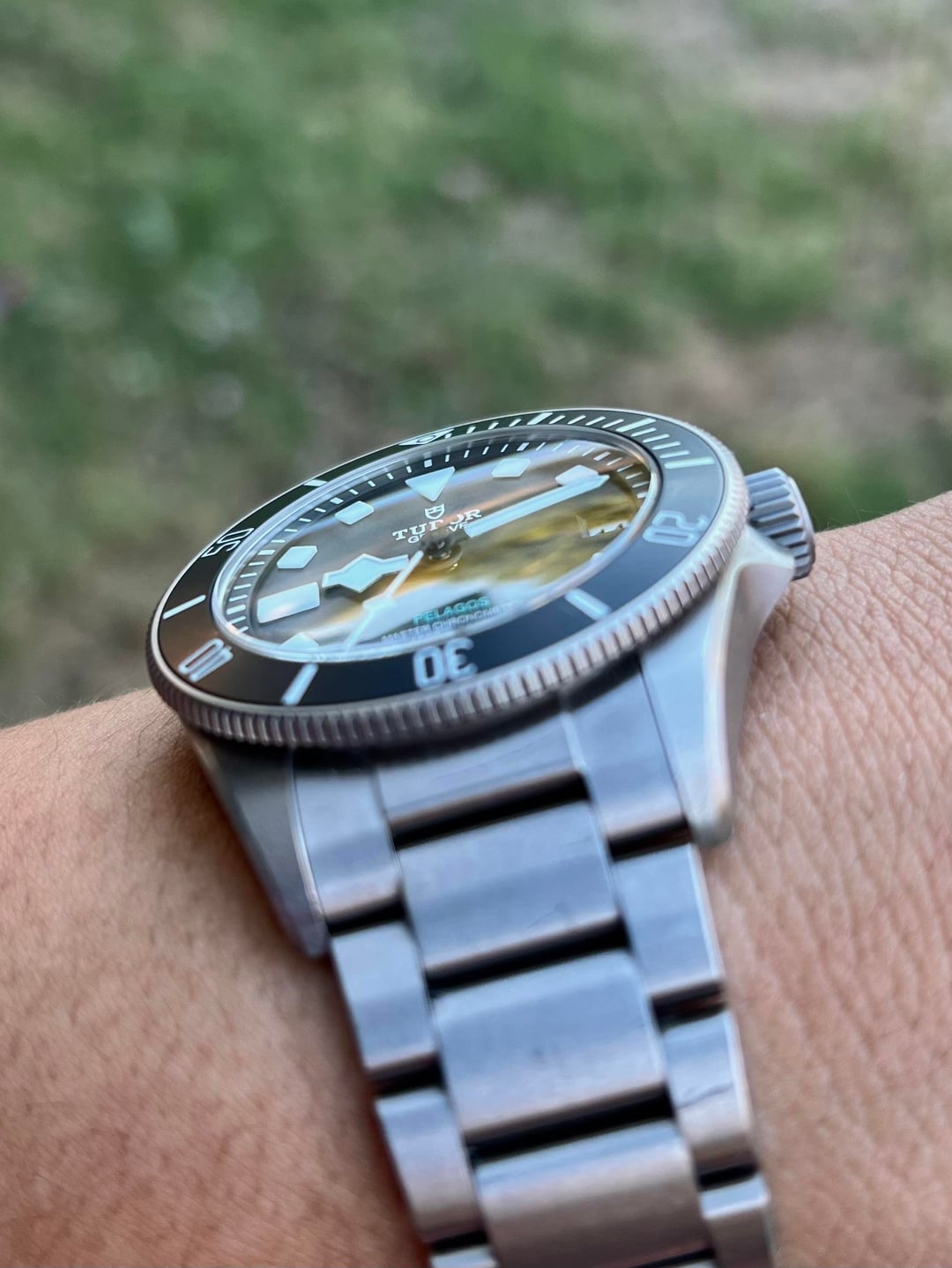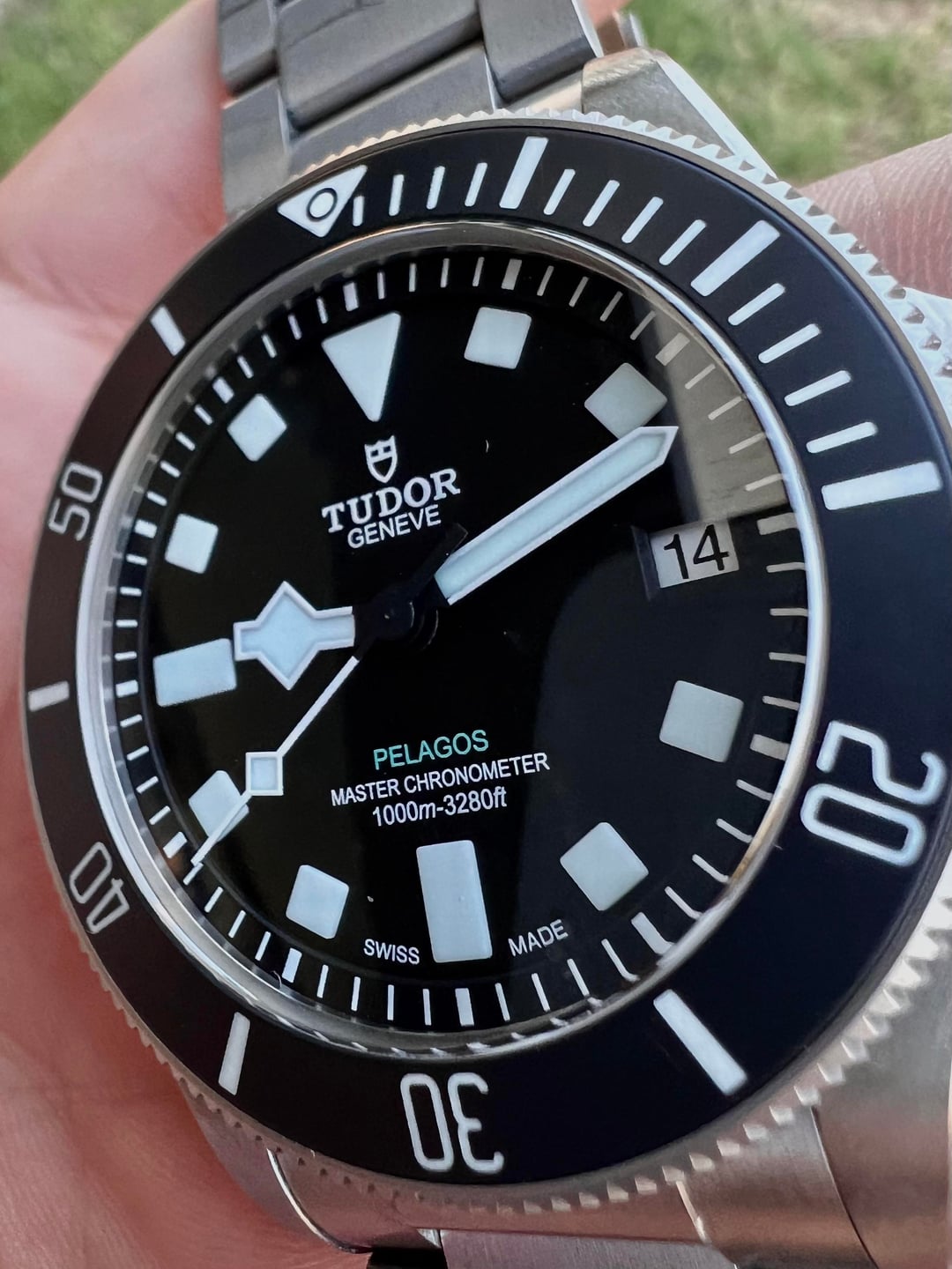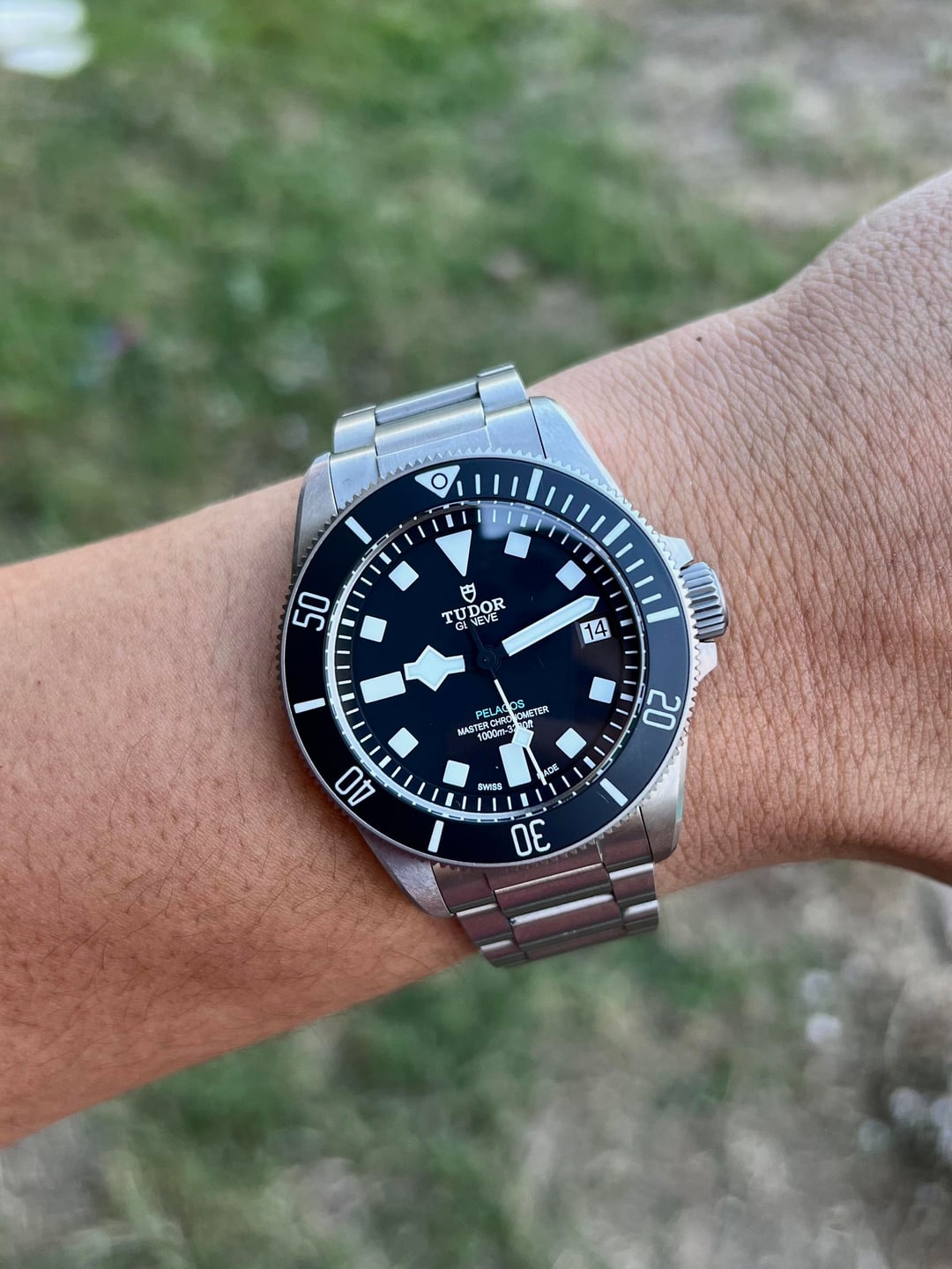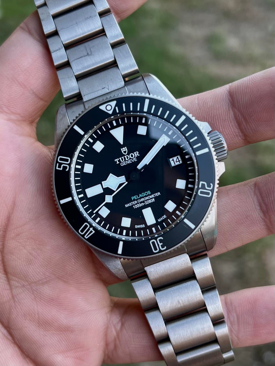 Hello everyone, up for sale is my lightly used Tudor Pelagos Ultra, easily the best Pelagos ever made in my opinion. Based on the standard Pelagos, the Ultra takes everything up a notch, the dial has been scaled for better legibility, with thicker hands, larger markers, and a green-lumed minute hand and bezel pip for effortless timing visibility. It features a lightweight titanium case and bracelet, a domed sapphire crystal, and all the tool-watch DNA Tudor is known for, just refined to perfection. Although it’s 1mm larger and 0.2mm thicker than the standard Pelagos, it actually wears thinner and smaller on the wrist thanks to the redesigned case profile. Where the standard Pelagos can feel a bit chunky, the Ultra feels just right, balanced, sleek, and incredibly comfortable. Specs: • 43mm case diameter • 14.5mm thickness • 51.7mm lug-to-lug • 22mm lug width • Newly designed Grade 2 & 5 titanium case • 1000m water resistance (crazy, right?) • Helium escape valve • Unidirectional bezel • Domed sapphire crystal • Matte black dial with sandblasted flange • MT5612-U movement (COSC + METAS certified) • 65-hour power reserve Comes as a full set — box, papers, warranty card dated 06/2025, and extra rubber straps. Condition is good, has some wear but nothing deep or distracting. Timekeeping is outstanding at +/-0 spd (link available for timegraph data). MSRP was $6,100+ — asking $4,850 shipped CONUS. No trades please, feel free to reach out with any questions or picture requests — thanks for looking! Timegraph data: https://imgur.com/a/OVGWPUD
