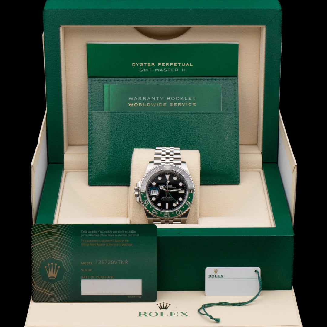 Up for sale is a **Rolex GMT Master II Sprite** [Timestamp](https://www.dropbox.com/scl/fi/u43yawwy3ogxly33xdr1m/IMG_7220.HEIC?rlkey=hclwx26h9i9bnzz2tg0nzica5&st=6nw31ete&dl=0) **Reference**: 126720VTNR **Year**: 2023 **Price**: Asking $17,395 via bank wire or Zelle. **Contents**: Watch (full links), Inner & Outer Box, International Warranty Card, Card Holder, Warranty Booklet, GMT-Master II Booklet, Hang Tag **Condition**: Excellent condition with minimal signs of wear. Thoroughly tested on a timegrapher - is running well and not in need of service. **Shipping**: This watch will ship fully insured in the USA through Fedex free of charge within 24 hours of receiving payment. Ton of references! IG: nikolauxeco