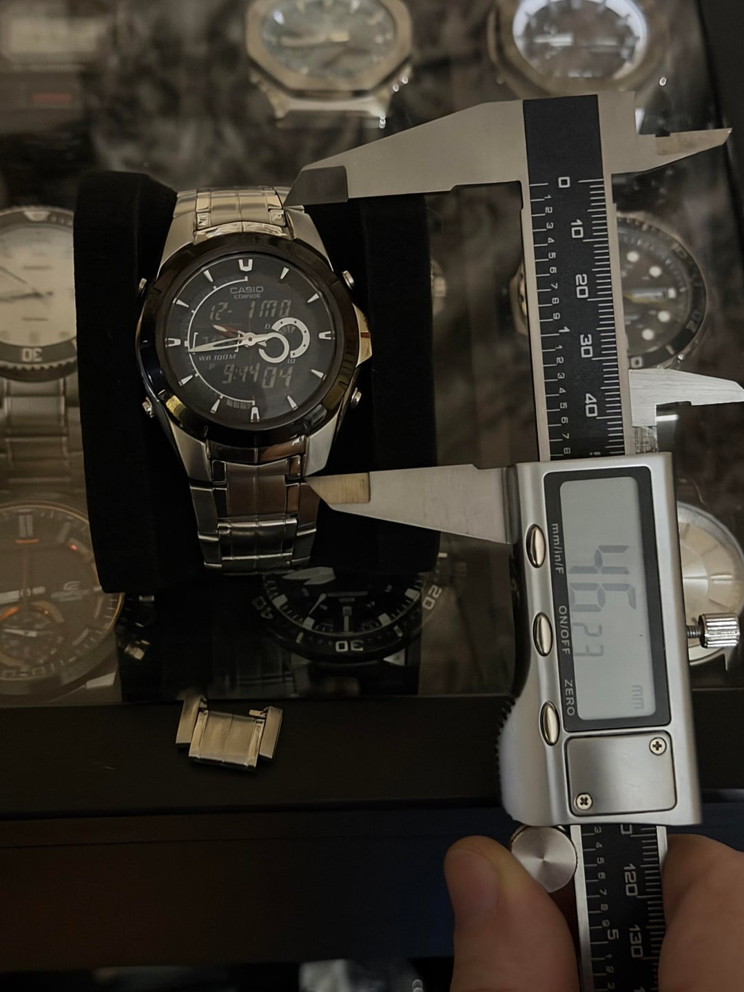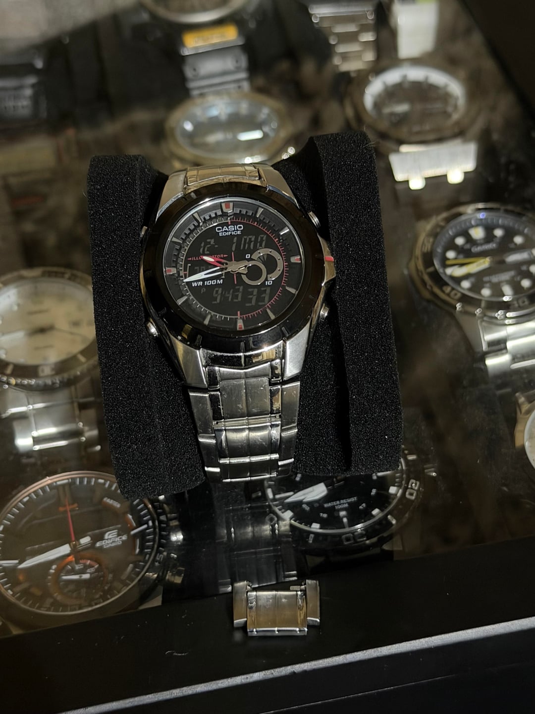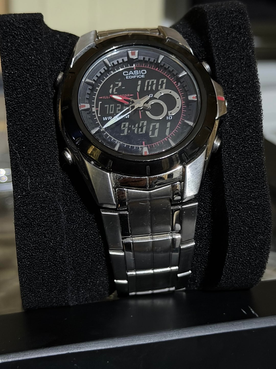 Timestamp in second image. Up for sale is my Casio Edifice EFA-119 Price: $50 shipped CONUS Condition: The watch is in pretty good shape in my opinion. The crystal doesn’t have any major deep scratches and the case only shows light wear. The bracelet is in worn condition and is sized to fit my roughly 7 inch wrist and does include an extra link Feel free to ask any questions or for more images. I would consider international shipping through eBay if you cover the fees. I accept PayPal, Venmo, and Zelle. Item will be well packed and shipped with tracking and insurance.