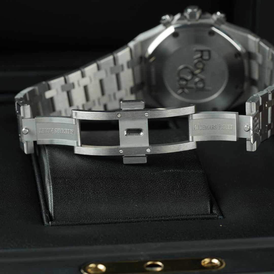 Vor 11 Monate | [WTS] Audemars Piguet Royal Oak Chrono Silver Blue Panda 38mm Steel 26315ST Complete | $45.999 | |
