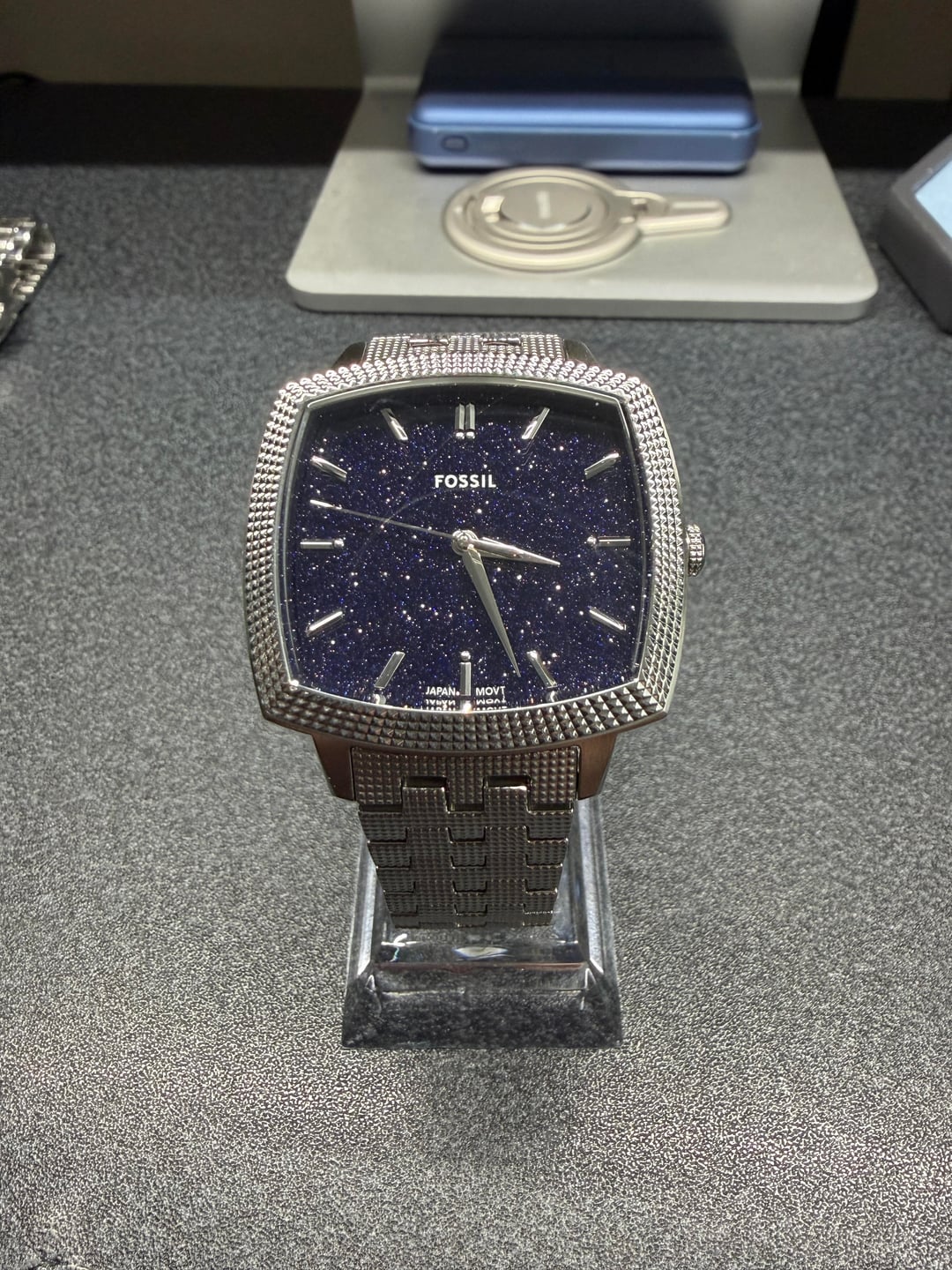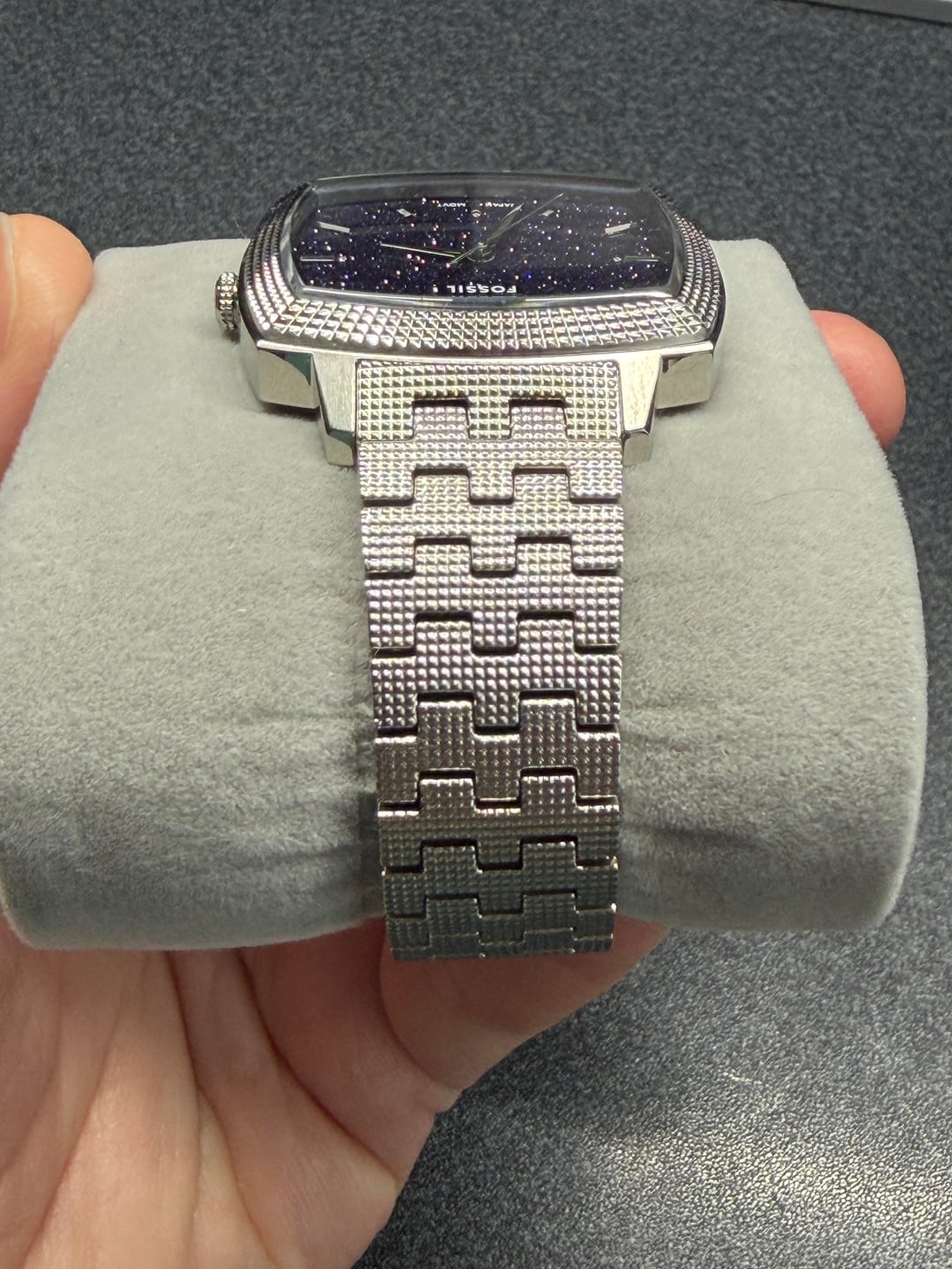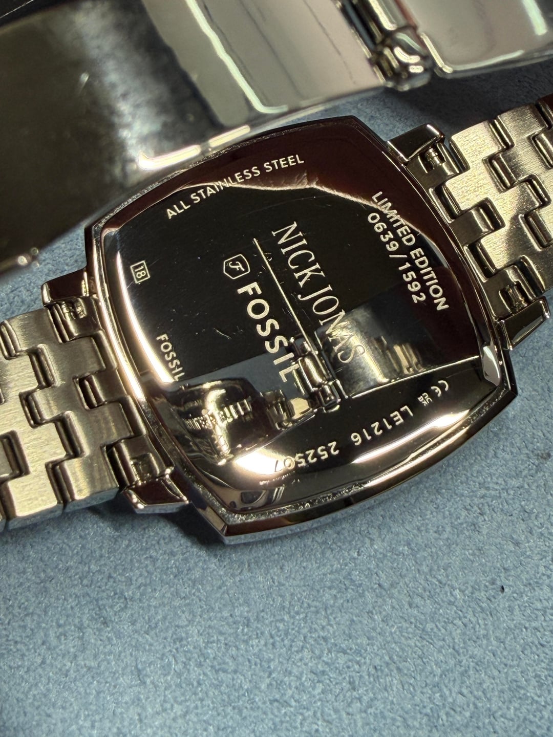 Hey folks Limited Edition collab between Fossil and Nick Jonas. Love the bracelet! Quartz watch, silver case with a silver-tone bracelet, 2-pusher foldover clasp, aventurine dial, mineral crystal. In very good condition, worn a couple times at home, purchased at Windup Fair a few weeks back new. Full kit with all links. $295 shipped conus PayPal F&F/Zelle. I have 57 positive transactions on watchexchange with good feedback so please read them. Also have an eBay store with hundreds of sales and hundreds of positive feedback so read them as well (offtherakcollectibles) Sale only, no trades. Ships from NYC so if you're in area can meet up locally. Please leave a comment here so I can view your transaction history and then message me if you're interested. Thank you!