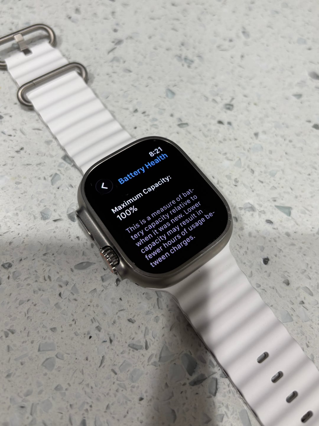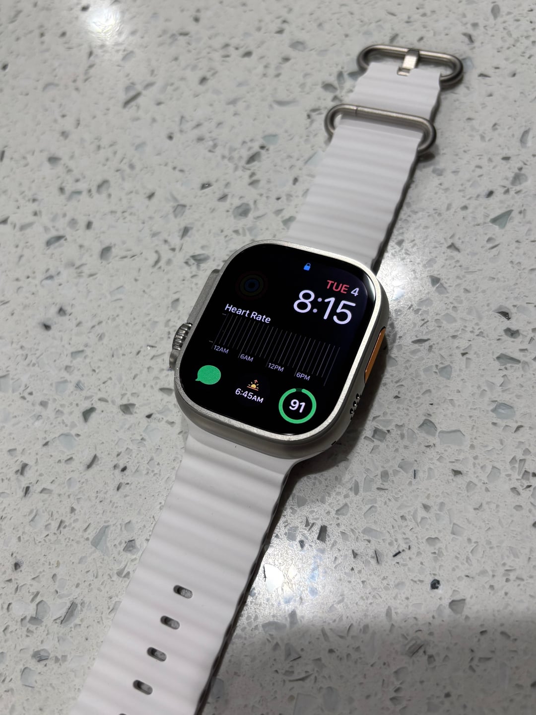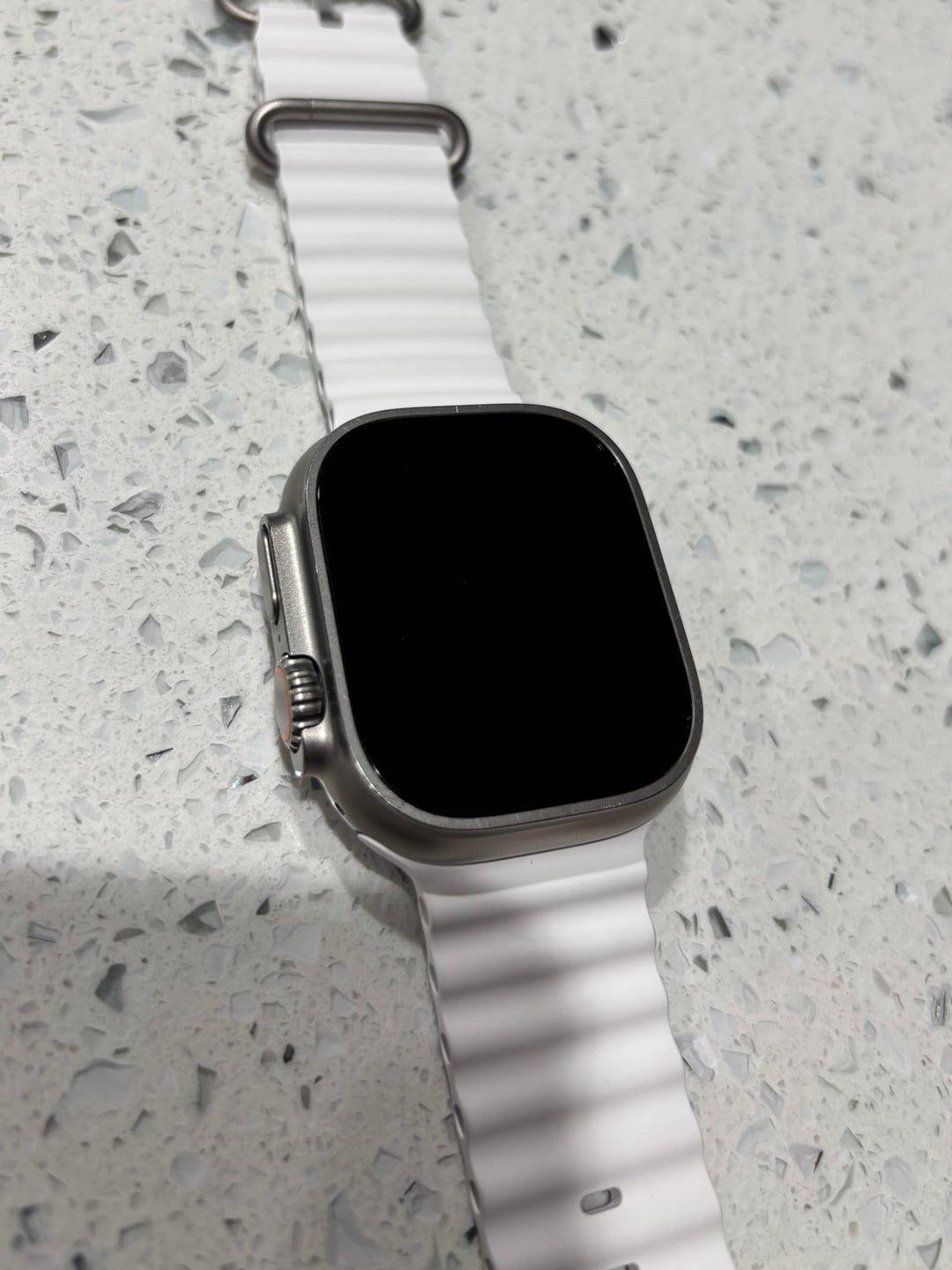 Apple Watch Ultra 2 in the natural titanium color along with a white Apple ocean band. Boxes/papers and charger included. Condition is excellent. No scratches on the crystal or case back/sensor. Sides of the case have maybe a hairline or two but otherwise excellent. Band shows no reasonable wear. Only thing that has some wear is the bezel, a few hairlines that appear and disappear depending on the light. Battery health is 100% and I've had no issues with the watches functionality Asking $450 with CONUS shipping on me