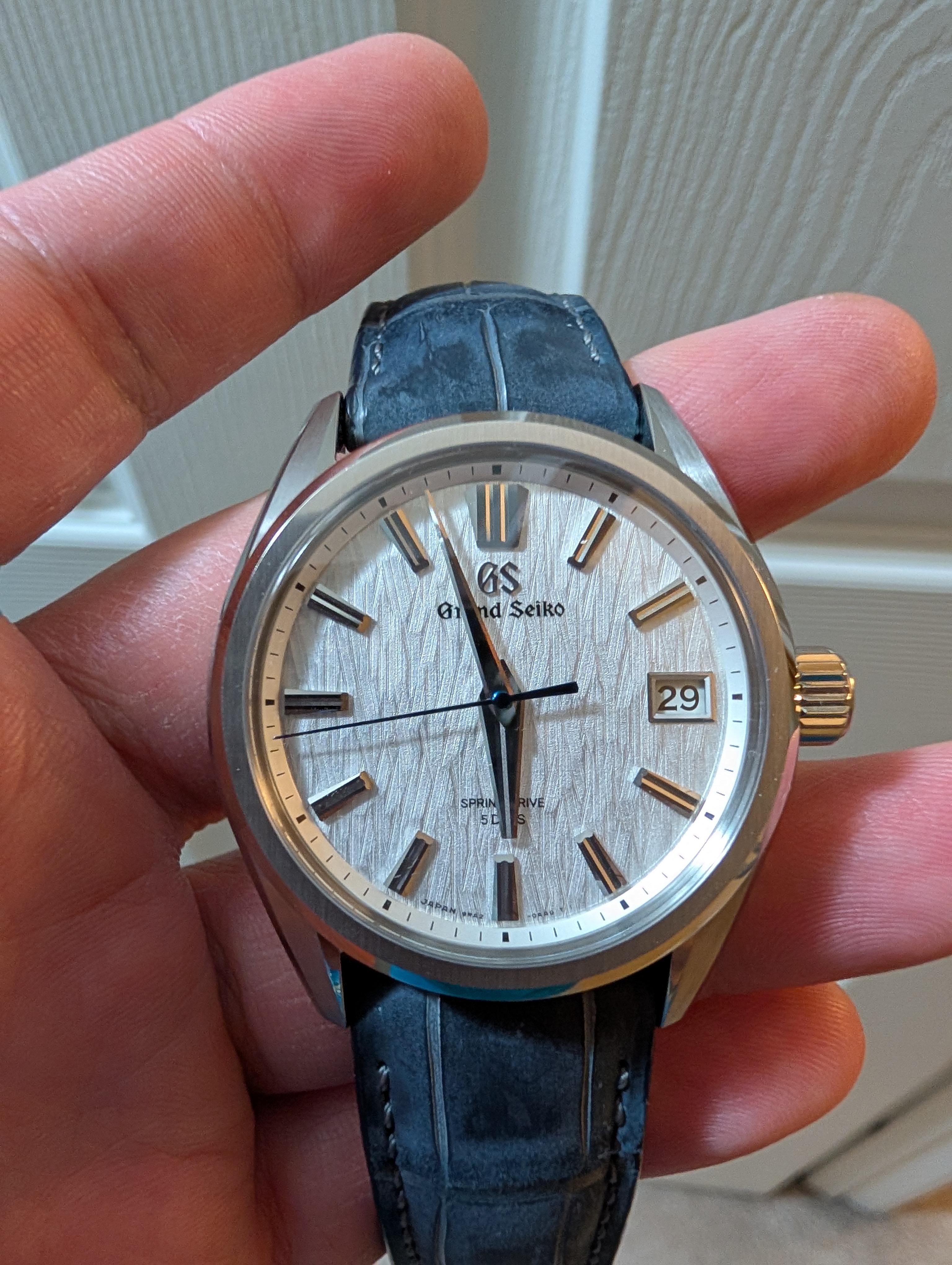 Selling a near mint condition Grand Seiko SLGA009 (White Birch spring drive) complete with box and papers. I am including 3 x additional straps (see photos): custom bespoke strap from Aaron Bespoke, OEM Grand Seiko navy alligator, and throwing in a Delugs grey nubuck strap. This set also includes an OEM 18 mm clasp. OEM bracelet is unworn condition. I am asking $6800 shipped for the entire set. I would prefer to sell the watch with the straps because I will no longer have a use for them, but if people are interested in some of the straps, I am open to selling them separately. Photos and timestamp: [https://www.dropbox.com/scl/fo/m15o5xoxxn6pa9fzinq14/ALjZrOLRlbSteg47ZVeeHcE?rlkey=vzjcvfs6imu5ti55pt9nlhoqs&st=ekc80g5s&dl=0](https://www.dropbox.com/scl/fo/m15o5xoxxn6pa9fzinq14/ALjZrOLRlbSteg47ZVeeHcE?rlkey=vzjcvfs6imu5ti55pt9nlhoqs&st=ekc80g5s&dl=0) The watch was worn a handful of time and all very carefully. I do not see any scratches or marks anywhere on the watch - I consider this near mint condition. The original bracelet is also UNWORN. I liked the look of this watch on a leather strap and took the bracelet off immediately. I am selling this watch because I feel like it's too redundant in my collection. It's truly a beautiful watch and an absolute strap monster (I went crazy with the straps). Acceptable payments are venmo, wire, and paypal. Please feel free to DM me with any questions! I am more than happy to talk and video chat to show the watch - in fact, I encourage it. Anyone can also message me to just talk about watches :)