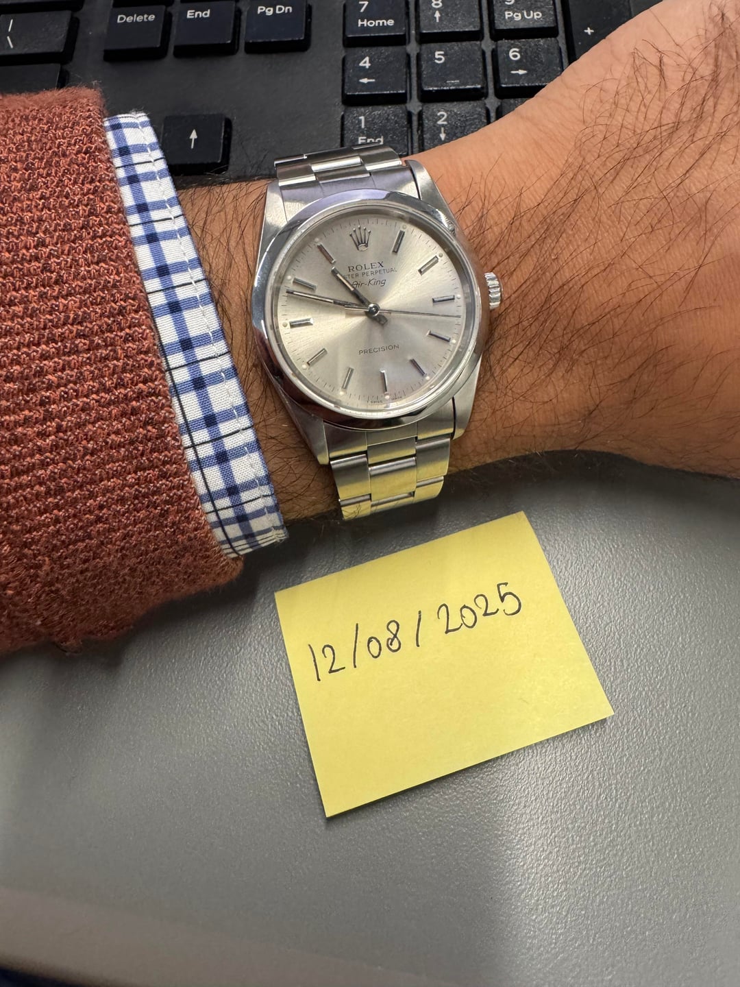 ![[WTS] Rolex Air-King Ref. 14000 - 34mm, Silver Dial, Excellent Condition 5](https://cdn-cf.watchpatrol.net/600x600/img/full/9668261c4619319b60d4b5dbe2e208d44f6739a2.jpg)