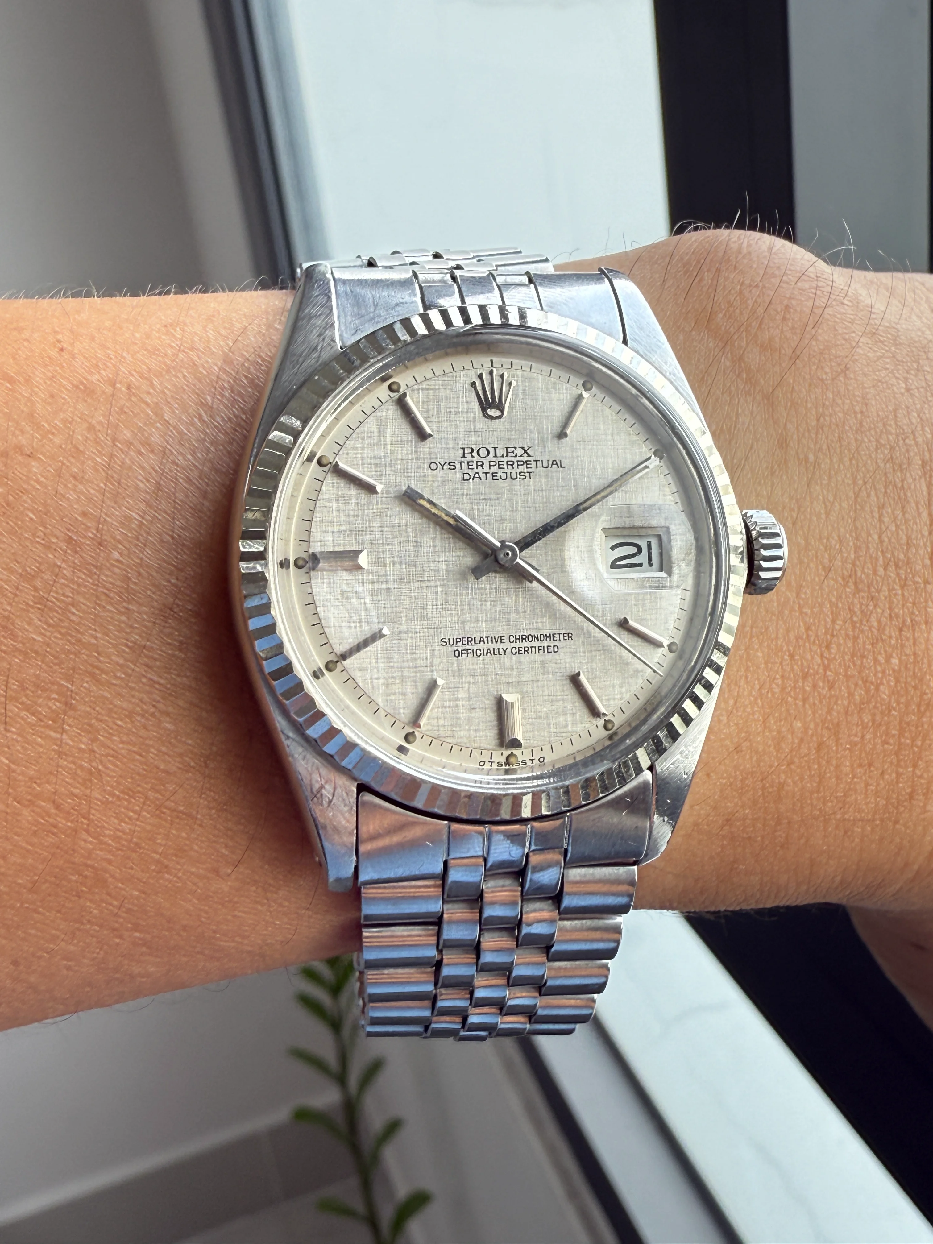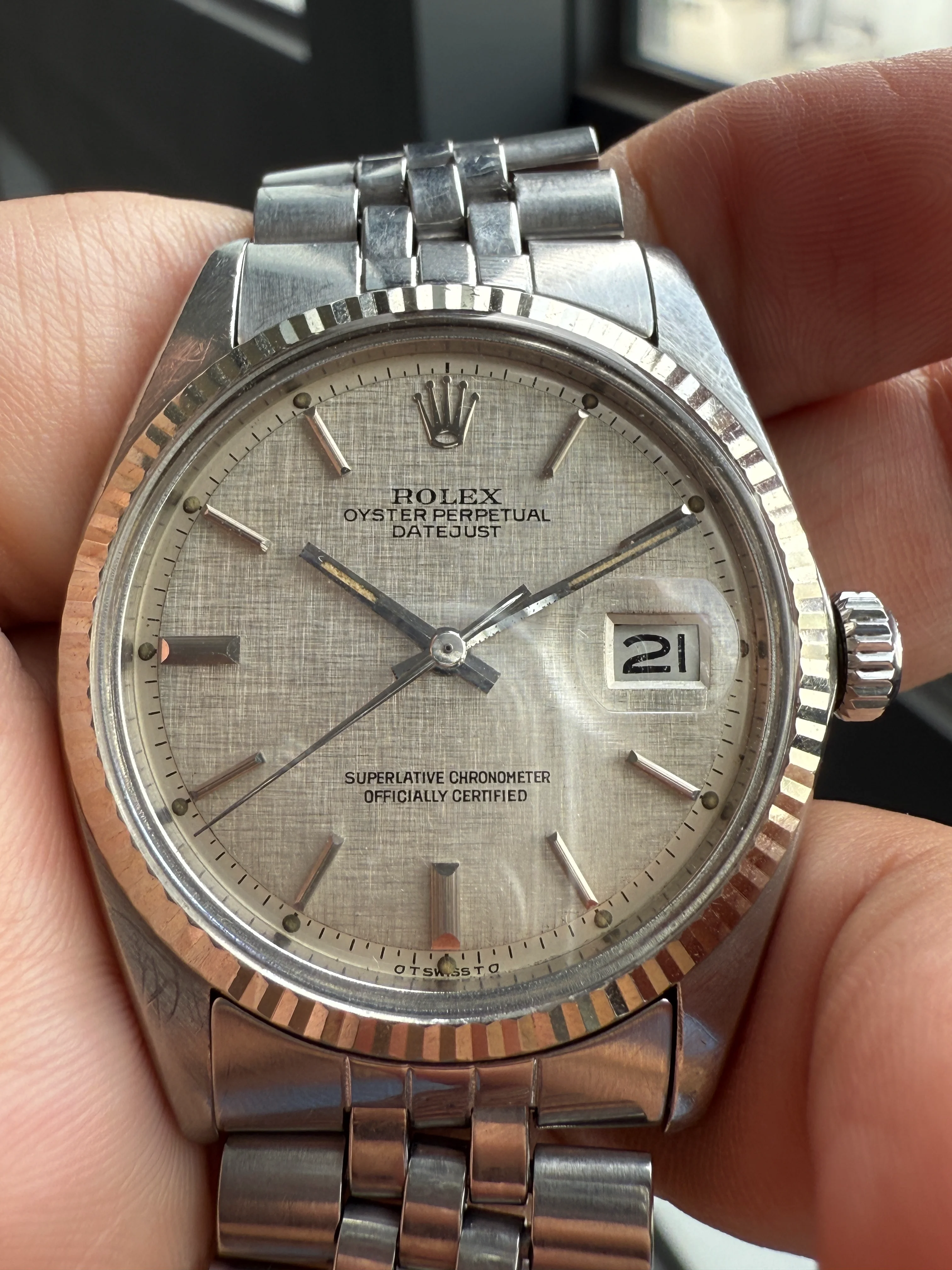 Rolex Datejust 1601, sigma silver linen dial, fluted bezel, jubilee bracelet, serviced, free shipping in EU