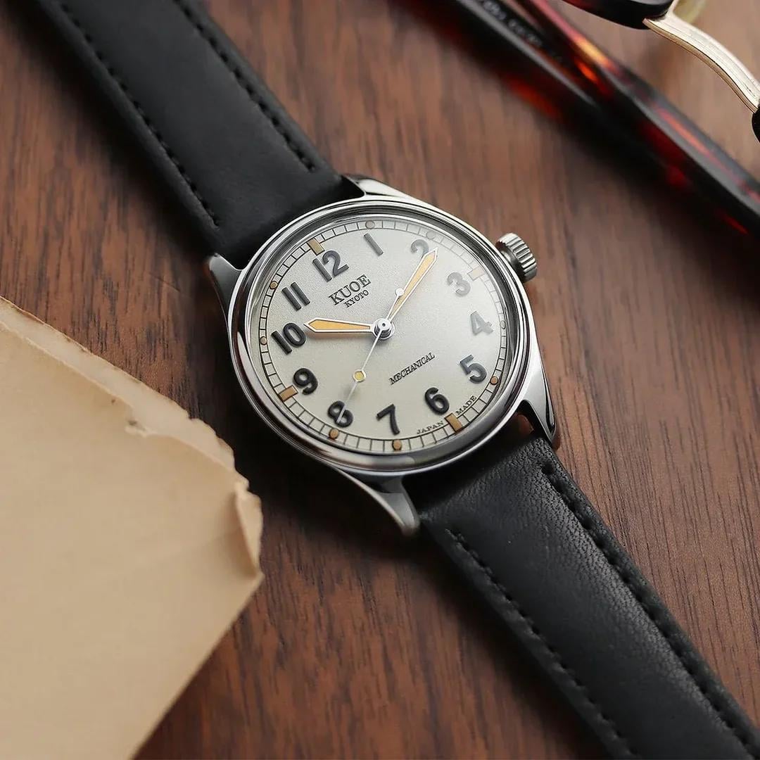 **FOR THOSE WHO LOVE VINTAGE LOOKING WATCHES!** Selling my KUOE Kyoto Old Smith 90-002 (SKU: **os90002-nd-iv-it-bk-sa**) - the Japan-made 35mm version with the ivory dial and black Italian leather strap. It has sapphire glass and that classic hand-wound feel KUOE does so well. I’ve worn it for about a week and realized I want to try something different. The watch looks absolutely stunning in person - elegant, lightweight, and super comfortable on the wrist. **Note:** I trimmed the strap by about half an inch so it fits smaller wrists better. You can see it clearly in the photos. Comes with the original box. Asking for $400 (Shipping included). Can also do local pickup in NYC. Here’s the official product page for reference: [KUOE Old Smith 90-002 – Ivory Automatic No Date](https://www.kuoe-en.com/product-page/kuoe-old-smith-90-002-japan-made-ivory-automatic-no-date)