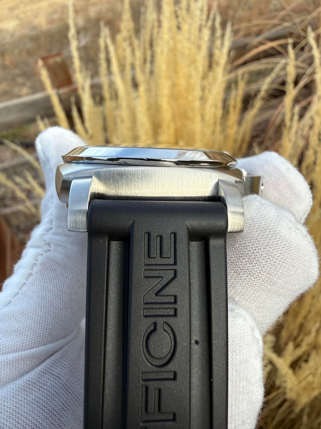 Up for grabs today is a Panerai Luminor 1950 PAM 321 in excellent condition. Produced somewhere in 2013, this 321 is a whole lot of watch for the price! The "1950" case is made from a solid block of stainless stee! With the classic sandwich dial, nuclear lume, 300m water resistance, 72 hour reserve with indicator on the dial and Panerai's in-house P.9002 automatic GMT with jumping hour hand, this tool watch is ready for any of your global adventures! This movement has a few other cool party tricks - when you pull the crown to the furthest hacking position, the small seconds hand "jumps" to zero so that you don't have to wait for it to make a revolution to get back to zero. Also, the GMT hand is the color of the dial and can be "hidden" behind the 12 hour hand and effectively convert it visually to a non GMT watch. See the pictures for this - very clever and very cool! The watch presents beautifully with a clean dial, crisp hands, and very light wear consistent with careful ownership. The case shows only minimal signs of use and has not been over-polished. Crystal is clean and free of noticeable marks. Details: • Reference: PAM00321 • Case size: 44mm • Case material: Stainless steel • Movement: Panerai in-house P.9002 automatic • Power reserve: 3 days (72 hours) • Dial: Black with luminous hour markers • Crystal: Sapphire • Water resistance: 300m • Strap: Panerai rubber strap Condition: Excellent – light, honest wear only Included: Watch only Service history is unknown but is running solid and all functions working properly. A fantastic opportunity to own a modern in-house Panerai with classic Luminor 1950 proportions and everyday wearability. Asking $3,999 shipped fully insured CONUS Located in Denver, CO Happy to answer any questions or provide additional photos upon request. Also, happy to hop on a FaceTime for serious buyers to show you the watch.