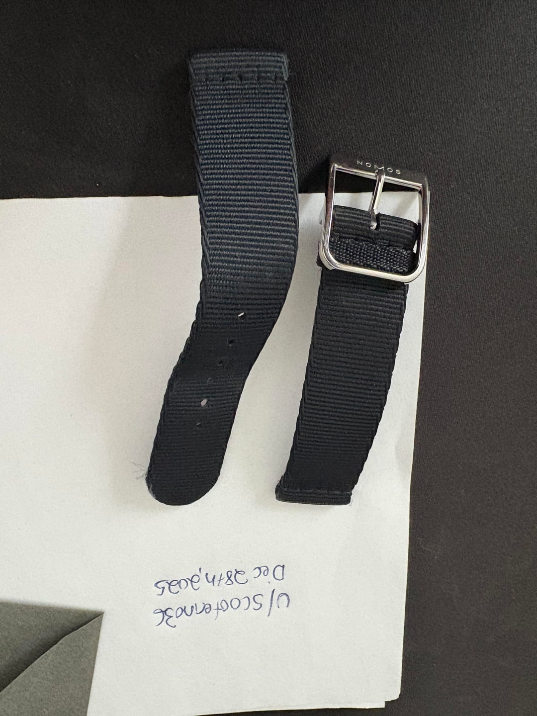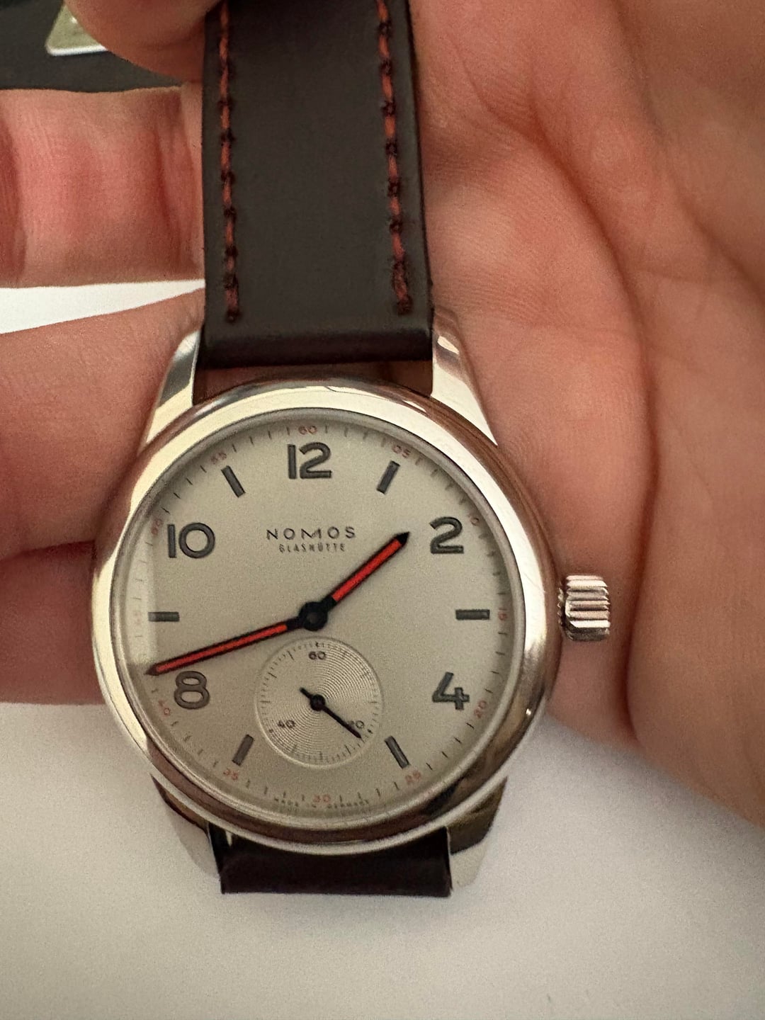Watch: Nomos Club 36 Reference: SKU: 703.1 What’s included: box and papers. Purchased new from Jomashop. Includes additional Nomos textile strap. Condition: good condition, only worn a few times. Some marks on lugs from strap changes. Added extra hole in oem leather strap. Price: $1150 OBO. Terms: Shipping CONUS, payment via Zelle, PayPal FF or Venmo. Sales are final unless misrepresented. Please message with any additional inquiries or requests. Thanks for your time!