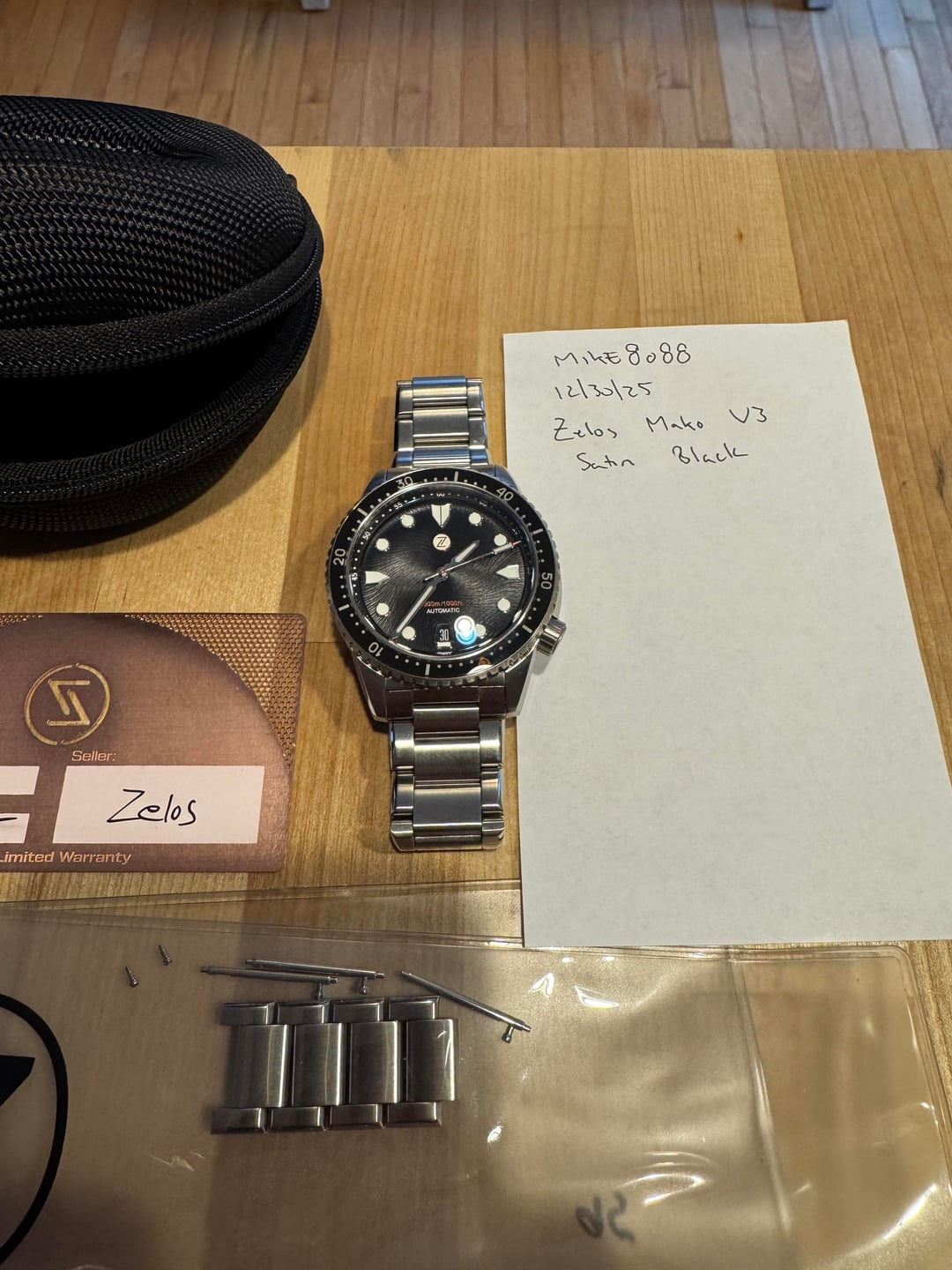 Looking to sell my Zelos Mako V3 in satin black. Comes with everything except the watch roll unless I can find it. Runs great but looking to fund another Zelos at this time. Looking for $400 shipped. Can do Venmo, Zelle, or PayPal f&f. Will shipped fully insured via usps priority unless another method is discussed! Feel free to reach out with any questions or if you’d like to verify via FaceTime. Thanks!