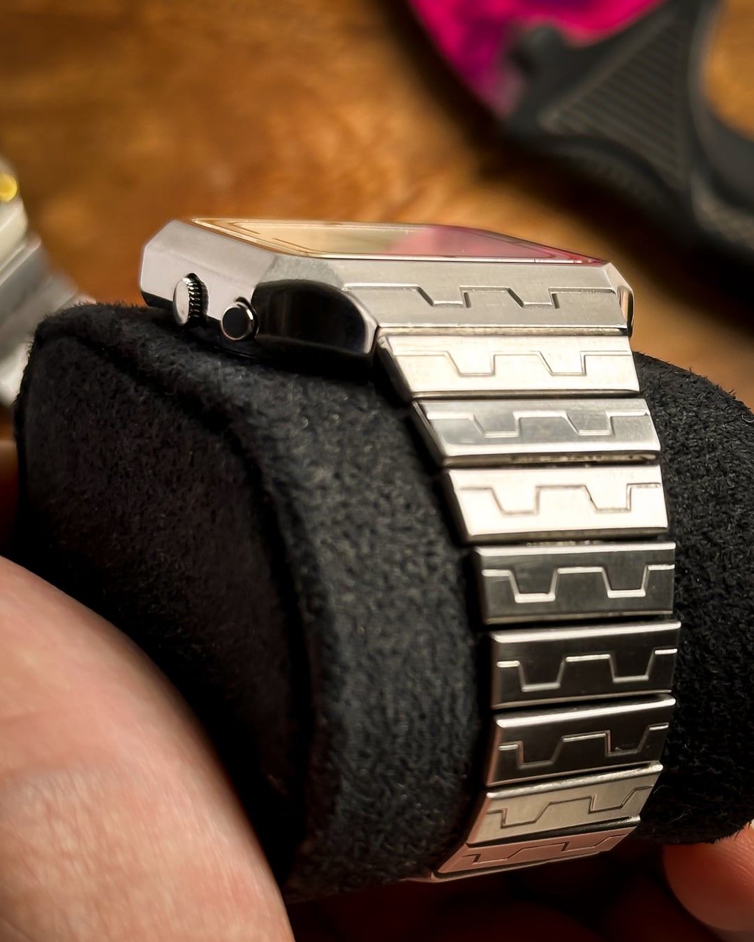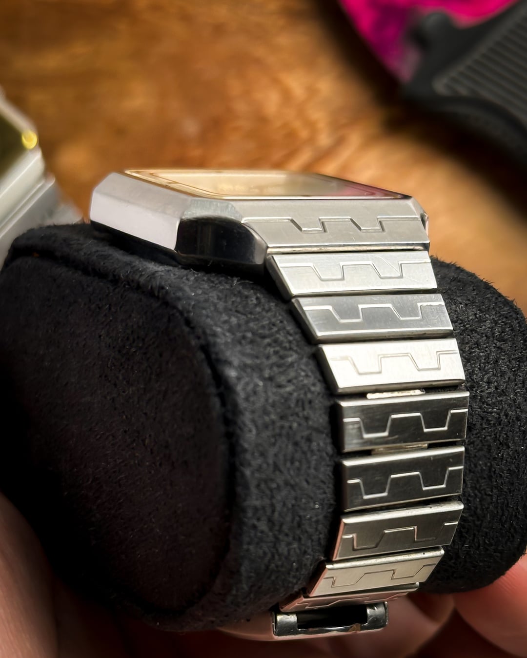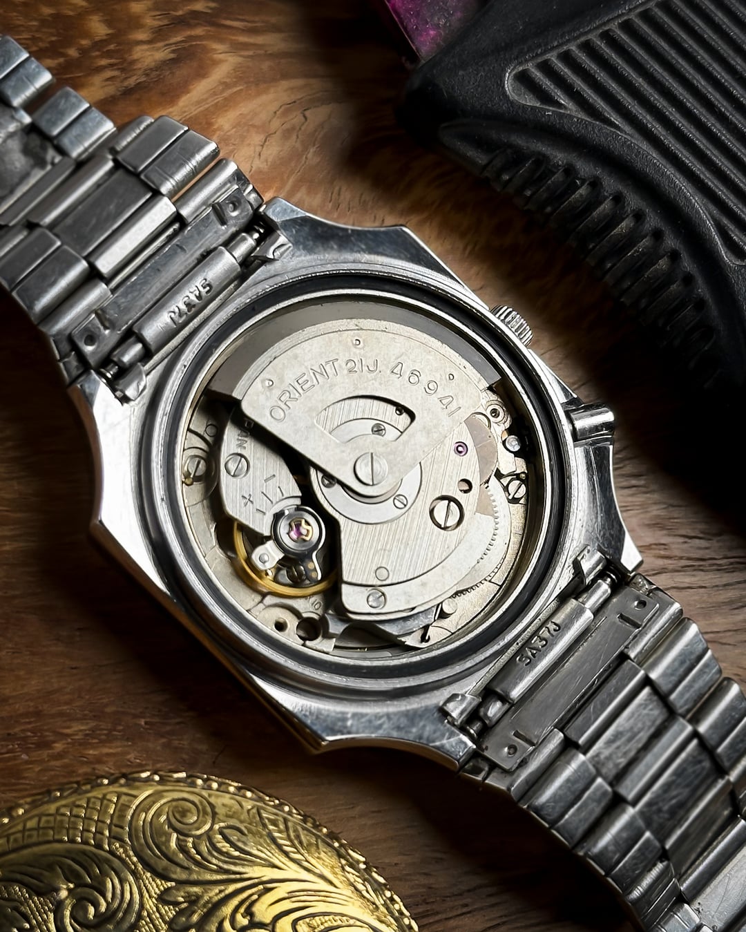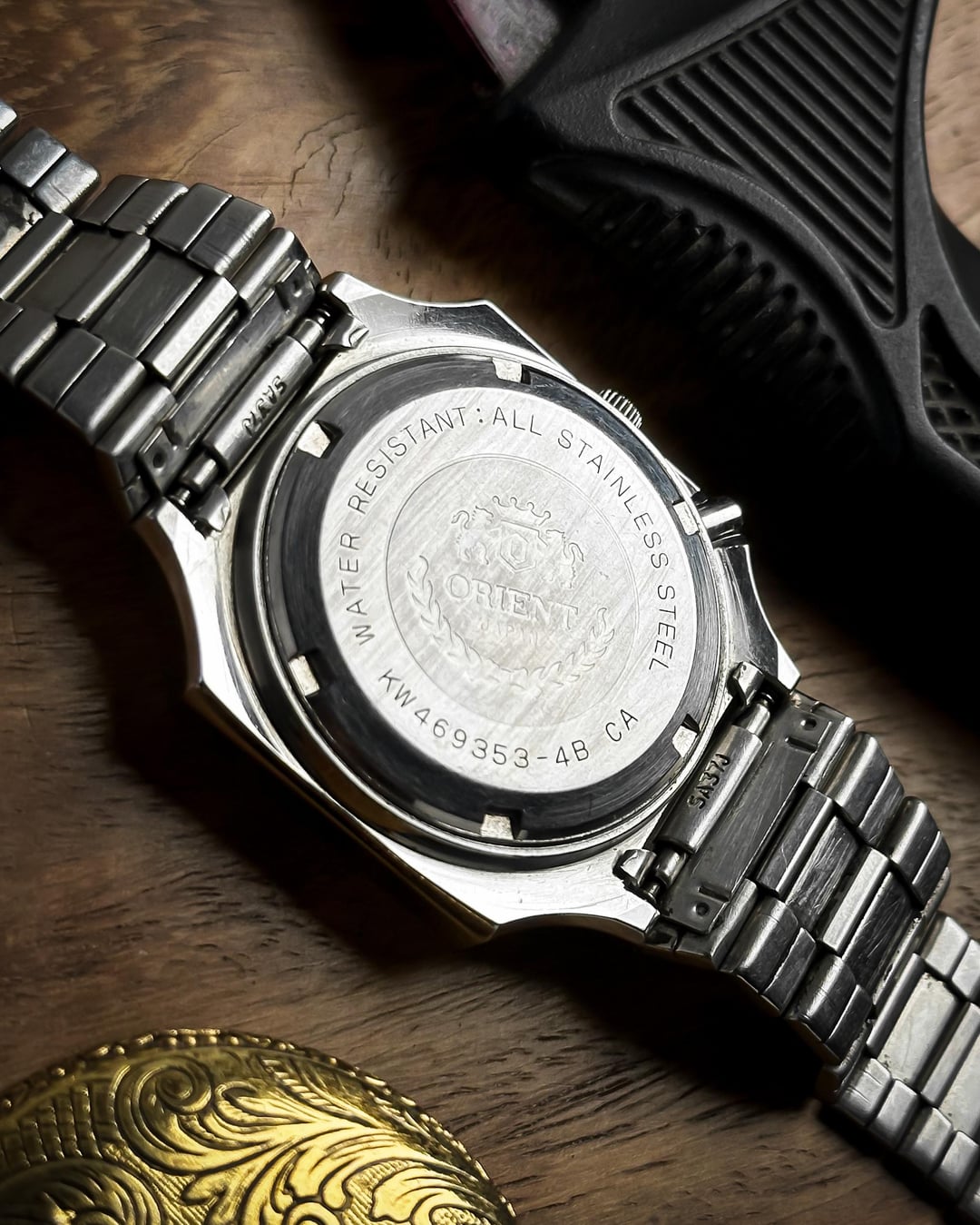 [Timestamp](https://drive.google.com/file/d/17tozbdge6j1Ytp2lChRv1cE_YurqEIGz/view?usp=sharing) Hey Watchexchange! This is the **Champagne Dweller**—a nickname we gave this automatic Orient Crystal to celebrate its luxurious **champagne dial color** and unique, bold aesthetic featuring a **TV case** and dazzling **gem-set accents**. Dating from the **1980s**, this watch is a rare and highly stylized piece of Japanese design, perfect for collectors who appreciate an integrated, statement look. The dial is the star: a striking **cream-yellow (champagne) color** featuring a **brushed texture** with faint **gradient lines** running horizontally. Time is displayed via **gold-tone pencil hands** and **golden dotted indices**. The day-date complication is at 3 o'clock. Adding flash, the inner bezel has a **reflective gold-tone surface** where **small gems are meticulously set**, acting as a dazzling decorative hour track. The case features the iconic **TV/Cushion shape** in stainless steel. The design is bold and geometric, with a crown at 3 o'clock and a distinct **date adjustment pusher at 2 o'clock**. Inside beats a dependable, in-house **21-jewel automatic Caliber 46941** movement, a hallmark of Orient's reliable watchmaking. The watch comes on its **original stainless steel bracelet**. Both the case and the bracelet share a bold, **stepped design** characterized, creating a cohesive and aggressively geometric look. **🔹 Key Dimensions** * Case Diameter: **35mm** (without crown) * Lug-to-Lug: **42mm** * Thickness: **10mm** * Lug Width: **18mm** 💵 **Price: $135 shipped!** 📦 **Payment: PayPal F&F** or G&S (**+4.5% fee by buyer**) or **bank wire (US banks accepted)** 📩 DM me for more pics or a custom timestamp. If you're looking for a rare, geometric vintage Orient with a truly unique gem-set dial and aggressive bracelet design, this watch delivers amazing value. Follow my [**Instagram**](https://www.instagram.com/everistwatches/) and **Reddit profile** for more **vintage drops**.