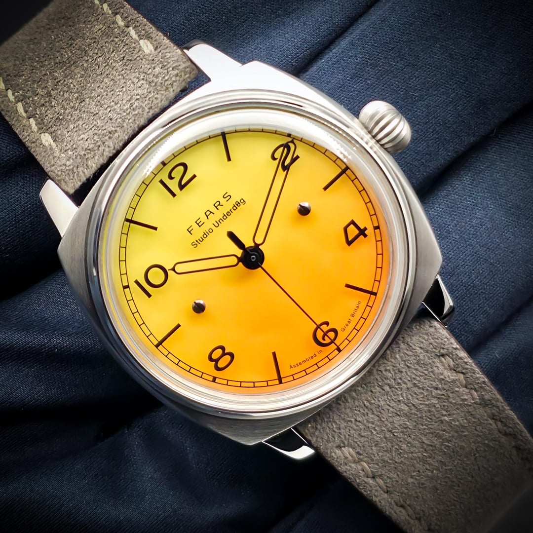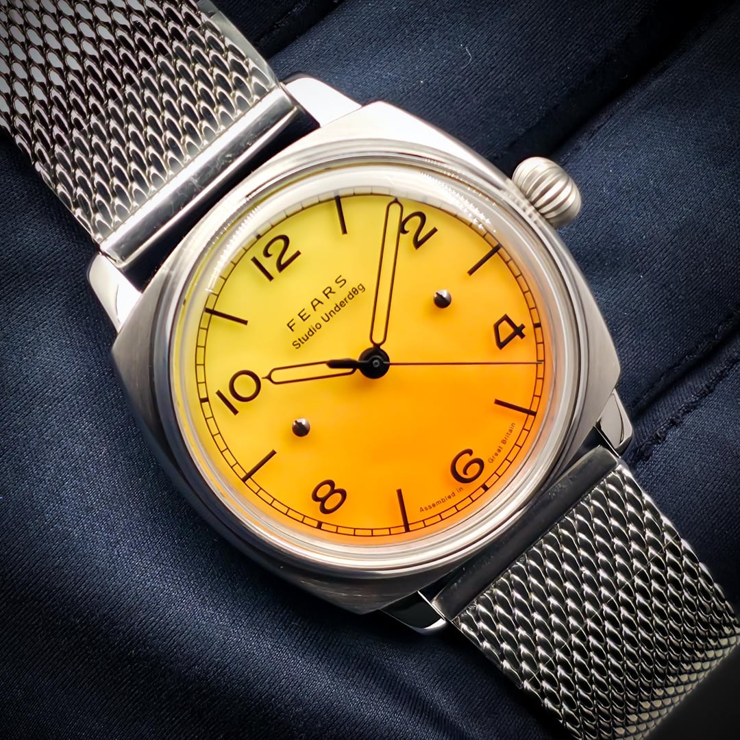 **✅ AVAILABLE NOW ✅** **🕰 Studio Underd0g x Fears ‘The Mim0sa’ – 02Series ‘hair of the d0g’ 🕰** **💎** Fun**,** eye-catching & colorful yellow to orange fading fully lumed dial **💎** **Price: 💰 1899/OBO (CONUS shipping included)** 🔹 C0nditi0n: BNIB/Never Worn 🔹 Includes: Full Set 🔹 Reference Number: 02MIG 🔹 Case: 38mm SS 🔹 Dial: Orange/Yellow 🔹 Bezel: Silver SS 🔹 Bracelet: Grey Alcantara Leather & Stainless Mesh 🔹 WR: 100m 🔹 Movement: Manual 🚀 Shipping: Fully insured 1-2 days from Buffalo,NY 📲 Follow us on IG: u/punchluxe 📎 Sales tax applies for NY residents without a reseller certificate 📎 Please message me with any questions & more pics Thank you for viewing my listings!