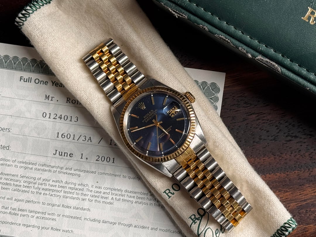 [WTS] Extraordinary 1966 Rolex Datejust 1601, Two Tone Gold, Blue Dial. RSC Service 2001.