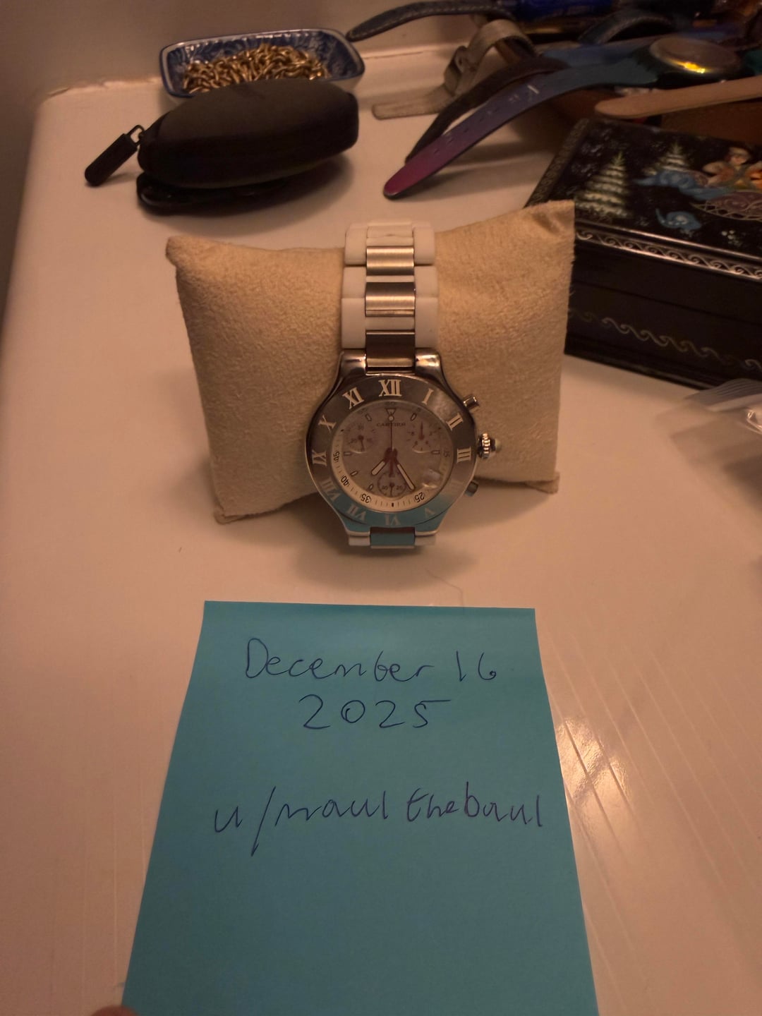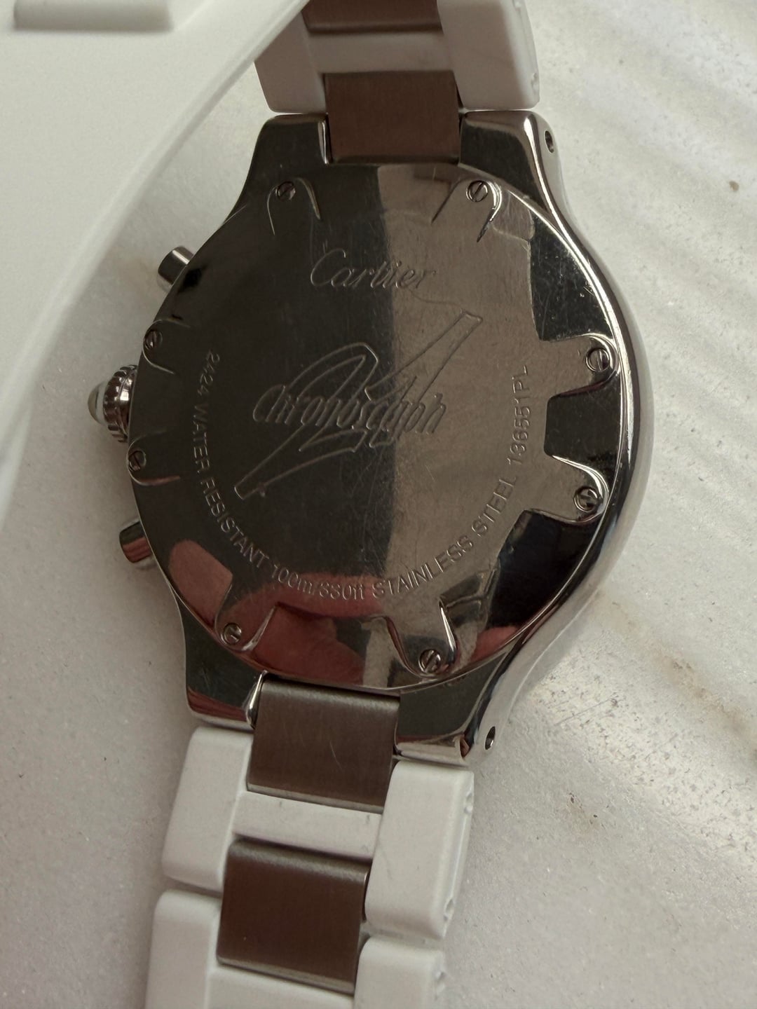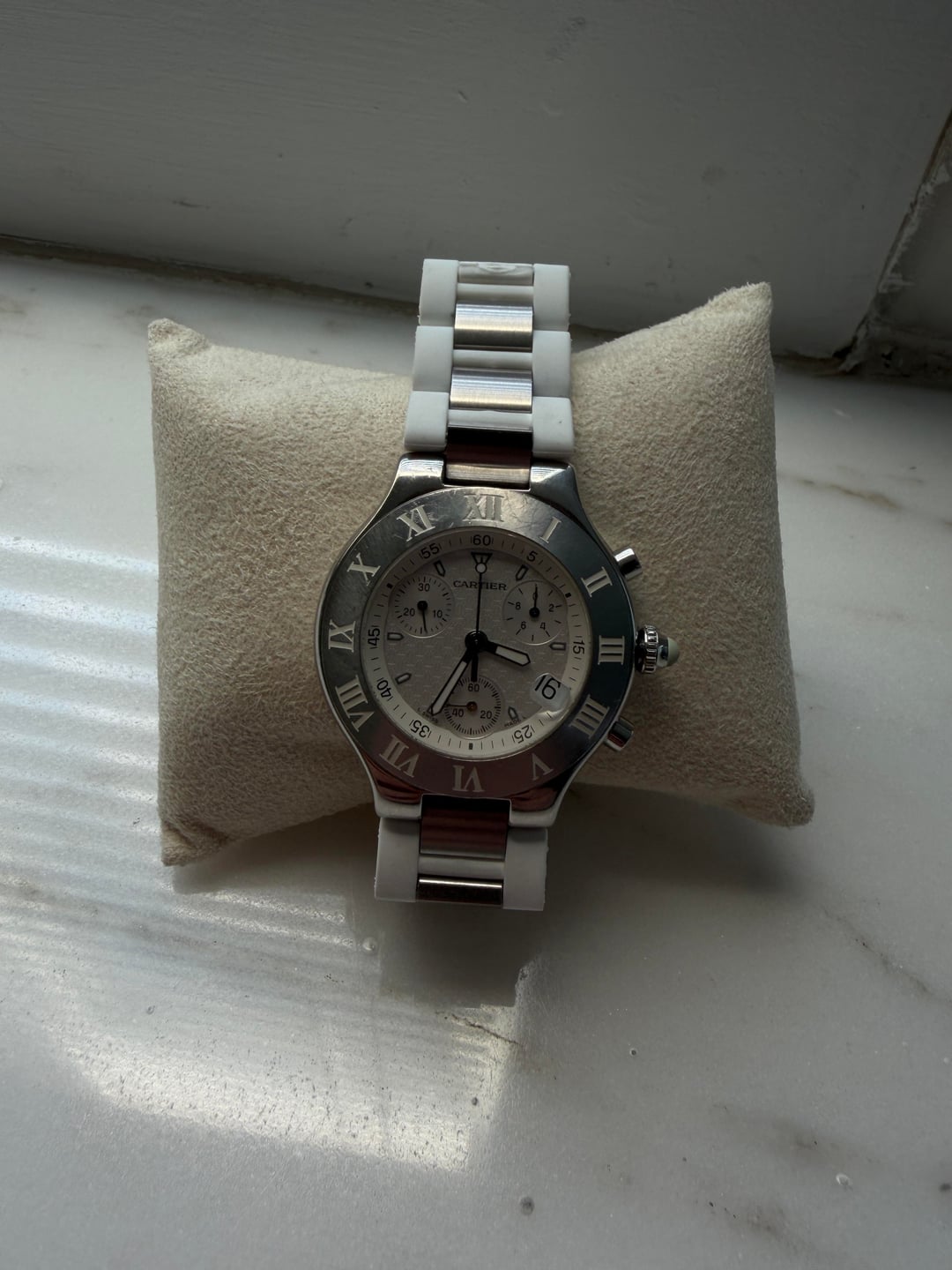 Hello everyone! All of the details are below and feel free to reply here with questions. Please refrain from PMing without asking here first. Have a lovely day! Authentic Cartier Must 21 Chronoscaph ref. 2424 (quartz). Fresh battery installed; all functions and chronograph professionally tested and working properly. Watch is in very good overall condition with light surface scuffs and minor scratches consistent with age; dial, hands, and crystal are clean. Comes fitted with a new silicon strap with deployment clasp for daily wear, and the original Cartier strap is also included. Includes a genuine Cartier velvet travel pouch. No box or papers. Late-2000s - early 2010s production era. Asking $1,950 OBO. Payment & Shipping: International buyers welcome. Buyer covers shipping and any import duties. Preferred payment is bank wire or Wise. PayPal Goods & Services available if needed (buyer covers fees). Watch will ship via UPS/FedEx, fully insured with signature required.