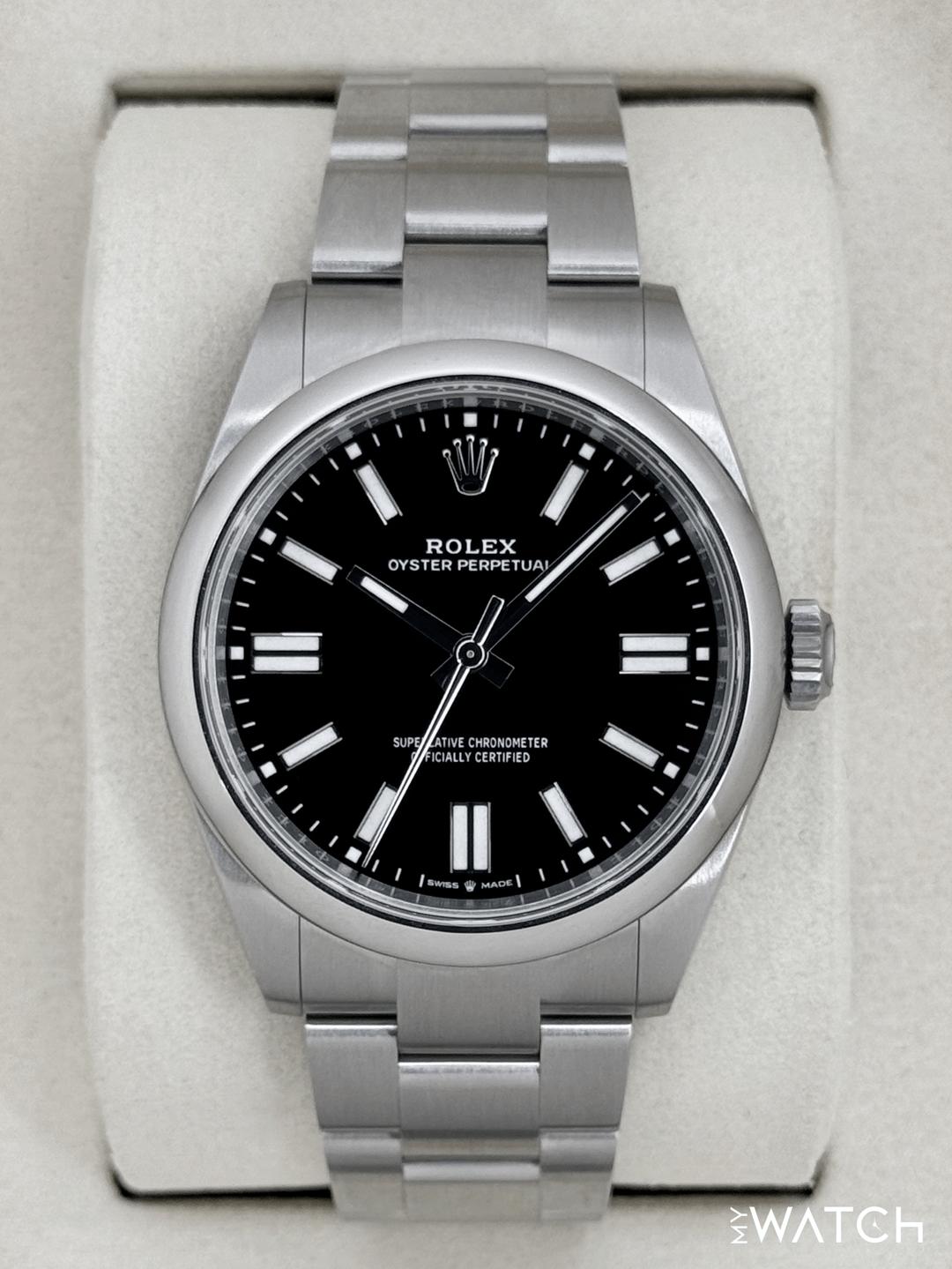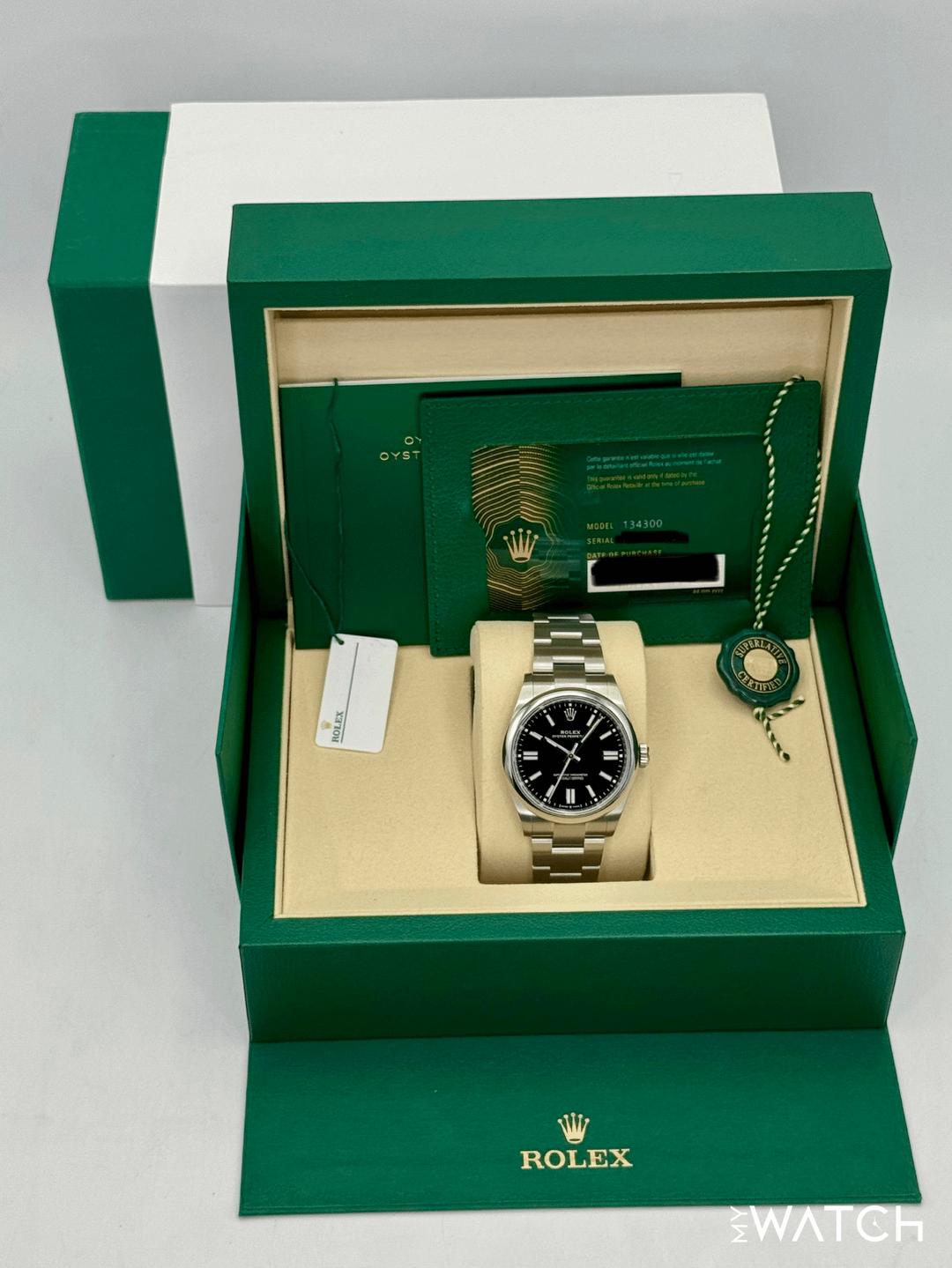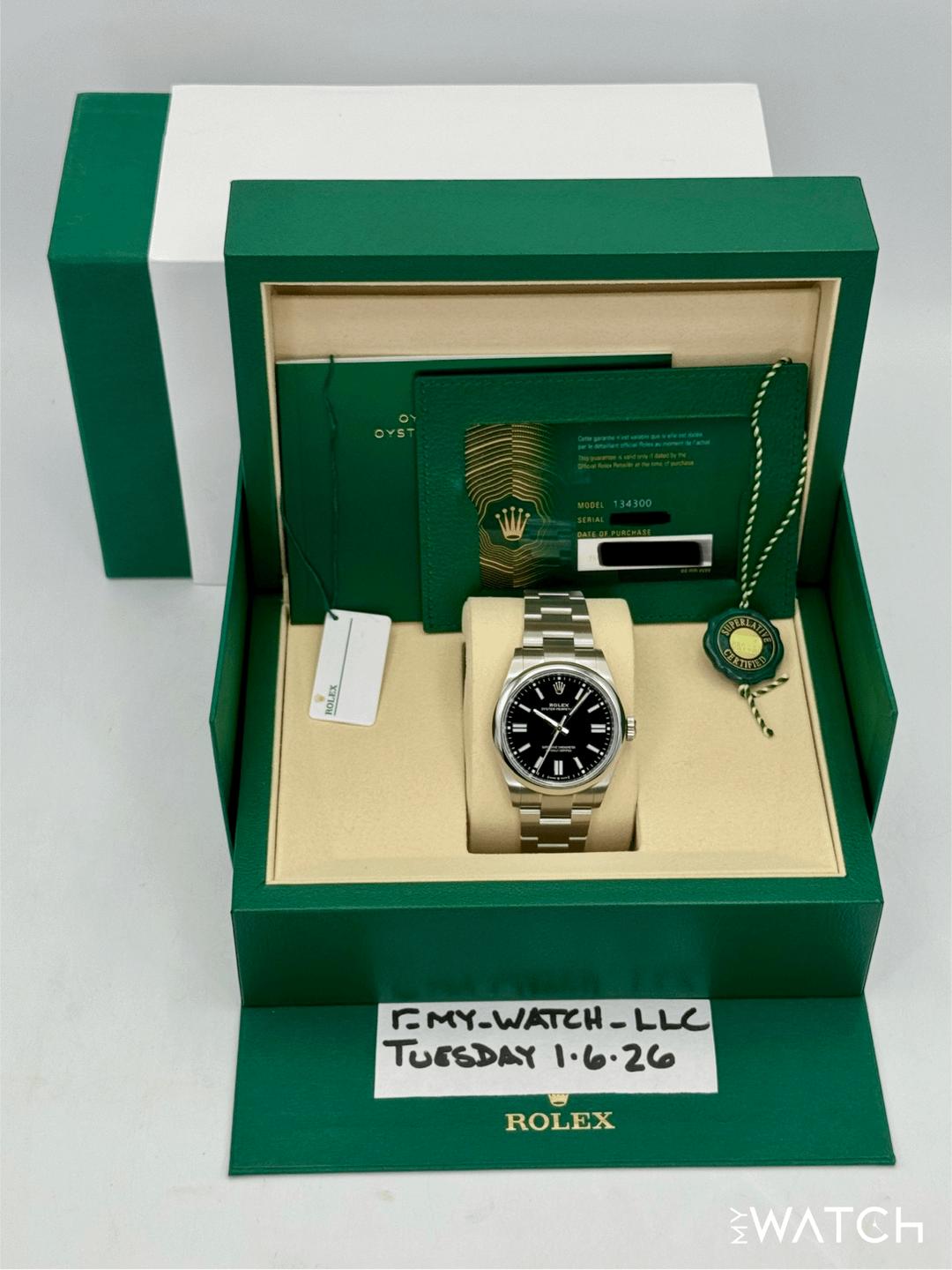 🔵**NEW 2026 Rolex Oyster Perpetual 41mm 134300 Stainless Steel Black Dial with Oyster Bracelet** 🔵**TRADE or SELL us your luxury watch, all brands considered. Message me details.** **Includes the following:** **✔️BRAND NEW UPDATED ROLEX BOX (DOUBLE BOXED)** **✔️Box and Papers - Yes** **✔️Warranty card dated 2026** **✔️5 year manufacturer warranty** **✔️Manual and Warranty booklets**  **✔️Green and White Hang Tags included**  **✔️Size: 7.75inch wrist (Full Links)** **✔️Material: Oystersteel** **✔️Watch is BRAND NEW/UNWORN** **✔️**[**Trades**](https://mywatchllc.com/pages/sell-rolex-watch) **welcome**   Business Name: **My Watch LLC**  LOCATION: Oak Park, Michigan ✔️[MyWatchLLC.com](http://mywatchllc.com/) for current inventory ✔️Google Business Listing [https://g.co/kgs/Cmd6FPW](https://g.co/kgs/Cmd6FPW) ✔️Business Hours M-F 9-6 ✔️Facetime/Video chat/calls welcome to view the watch interested.  ✔️Contact: 248-422-0909 via text or call for quickest response. 🟢TERMS: Visit [MyWatchLLC.Com](http://mywatchllc.com/) for payments accepted 🟢REFERENCES/REVIEWS: We are well reviewed on all platforms from google, trust pilot, rolexforums, additionally we have 300+ reference in multiple FaceBook watch groups, reference checks welcome. 🟢SHIPPING: If you are not local, we offer Fully Insured FedEx overnight shipping in the USA for a fee. International shipping available. [https://mywatchllc.com/products/new-2026-rolex-oyster-perpetual-41mm-134300-black-dial](https://mywatchllc.com/products/new-2026-rolex-oyster-perpetual-41mm-134300-black-dial)