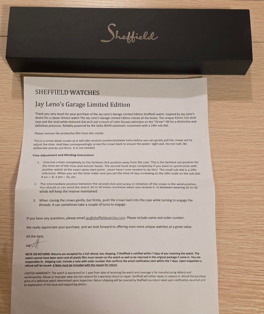 ![Thumbnail [WTS] Sheffield Jay Leno’s Garage Limited Edition Driver’s Watch FIRE SALE 4](https://cdn-cf.watchpatrol.net/120x120/img/full/75ff32481716a9671f77b5b87df702b7ce511811.jpg)