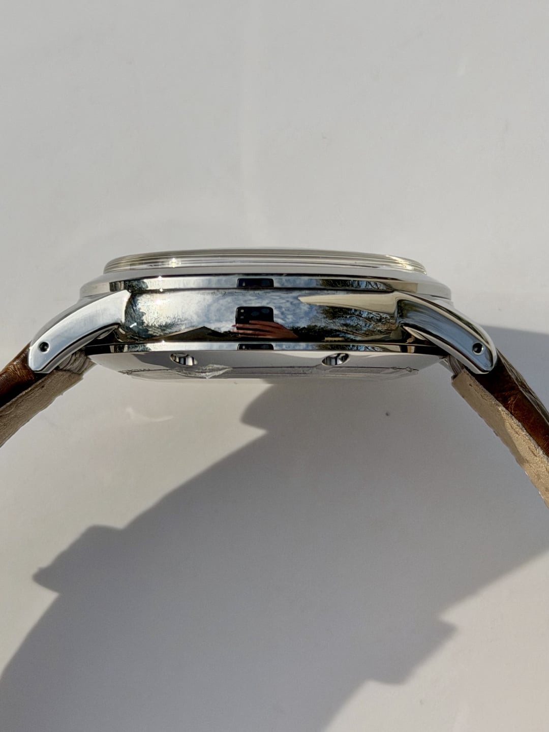 # SBGH013 Video: [https://youtube.com/shorts/F6Y4zQXVlcw?feature=share](https://youtube.com/shorts/F6Y4zQXVlcw?feature=share) Up for sale is a very unusual Grand Seiko reference SBGH013 in fully polished Elegance style case. This Hi-Beat auto features a full Arabic numeral hour marker dial, rare for Grand Seiko (they've done only a handful of references with this). Movement is the 9S85 beating at 36000bph for a super smooth sweep. The dial color is a beautiful soft creamy/ivory. Crystal is perfect, a tall, sapphire top hat style that scatters light across the Zaratsu polished hands and numerals. The watch comes double boxed with the original Grand Seiko certificate, manual (service manual as well), hang tag, and 2024 Grand Seiko Service paper copy. Condition is excellent, only notable is a small blemish on the minute hand visible in pics, and faceup timegrapher shows +1 seconds per day with excellent amplitude and beat error. The GS croc strap is unworn, and it comes with the Grand Seiko deployant buckle. Case is 39.5mm in diameter, with 19mm lugs and 46.9mm lug to lug length. Shown on my \~6.75" wrist for reference. **Imgur album**: [https://imgur.com/a/sbgh013-ATtwQwh](https://imgur.com/a/sbgh013-ATtwQwh) **Timestamp**: [https://imgur.com/qkTCoU6](https://imgur.com/qkTCoU6) Last dealer sold listing of one of these I found was $4k, and there's a current eBay listing with scratched crystal and beat case for $3750 plus ship and tax. I’m asking **$3,595 including fully insured shipping in the US**, paid via wire, Zelle, or Venmo F&F. I am happy to do a video call to show the watch. I will ship internationally and only charge the difference in cost on top (Wise accepted for international payments). I’m not interested in trades. Feel free to reach out with any questions!