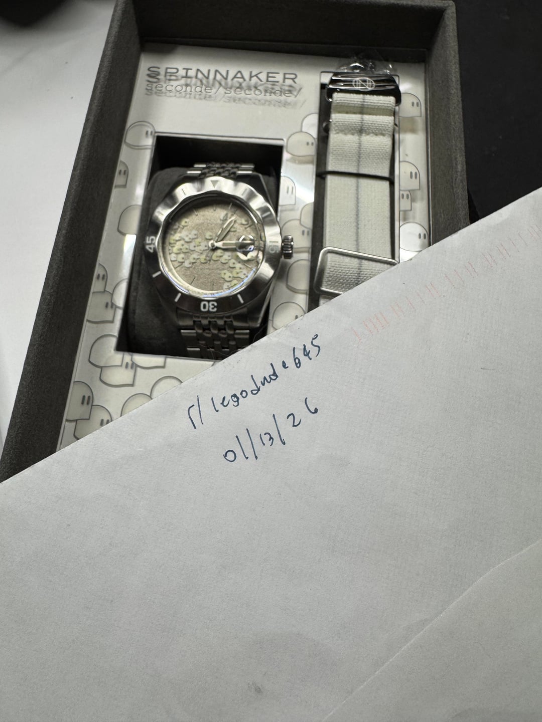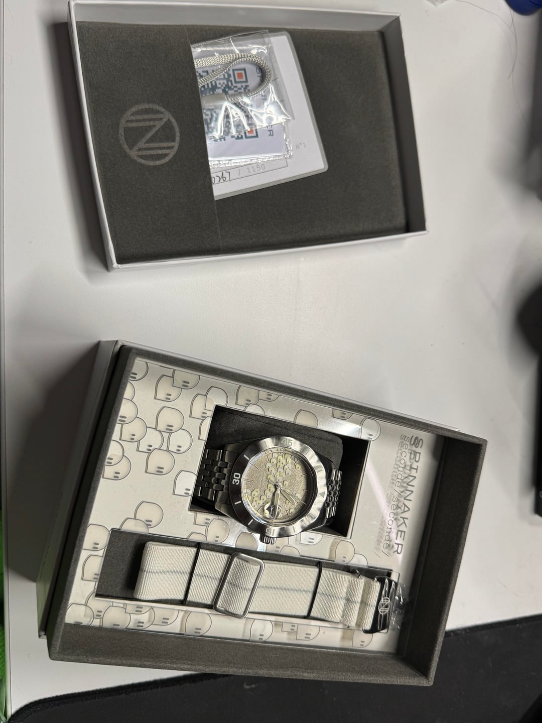 Up for sale is a 43mm Spinnaker Fleuss Automatic - Seconde Seconde 2025 Edition first batch. It is in like new condition in box. The watch is too big for me so it has just been sitting here. Looking for $485obo shipped. I accept Zelle,Venmo, or PayPal ff or gs with a fee. Specs: Movement: Seiko NH35 Case Material: Stainless Steel Case Size (mm): 43.0 Case Thickness (mm): 13.9 Lug to Lug (mm): 51.0 Dial Colour: White Index & Luminous: Printed Index With Swiss Newlite Lens: Anti Reflection Coated Sapphire Lens Crown Type: Screw Down Band: 22mm Stainless Steel With Fold Over Buckle With Safety Lock And Push Button Extra Band: White Nylon Strap Water Resistance: 15 ATM Weight (g): 173