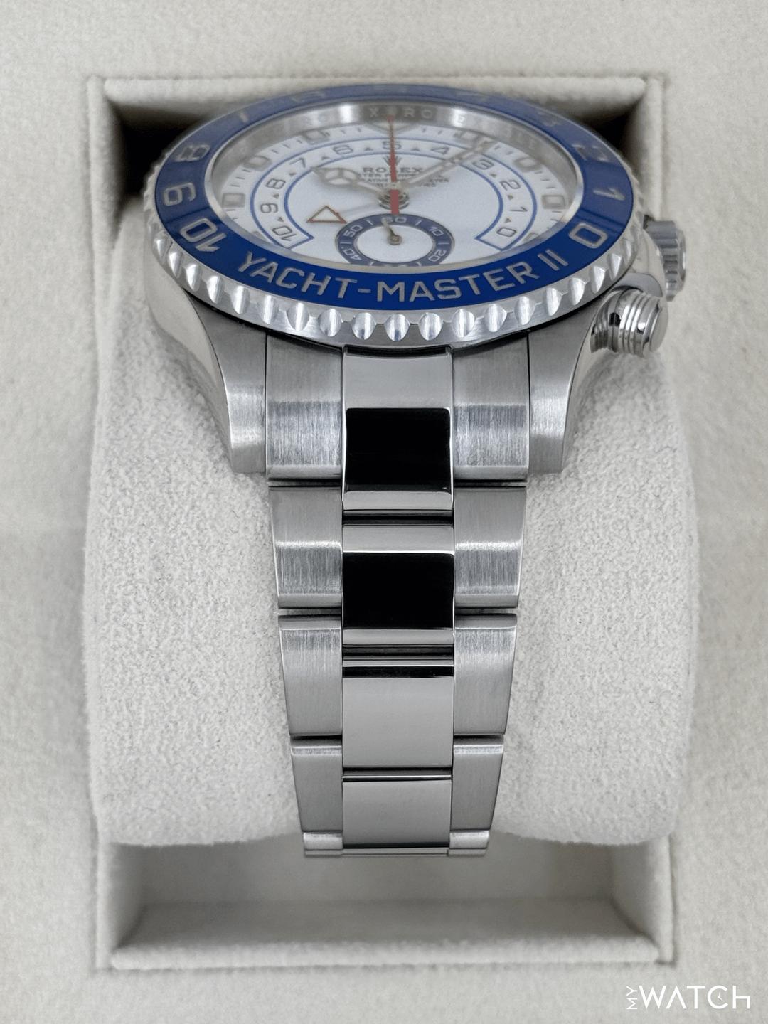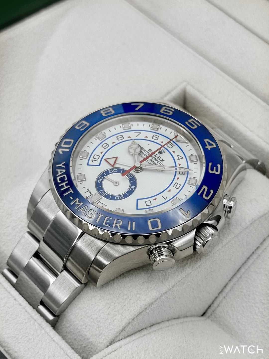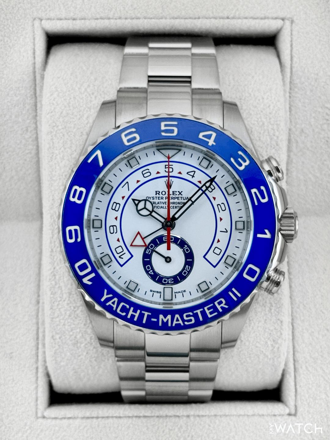 | Rolex Yacht-Master II 44mm BLUE HANDS White Steel Ceramic Regatta 116680 Watch tailoredtimepieces (303) |