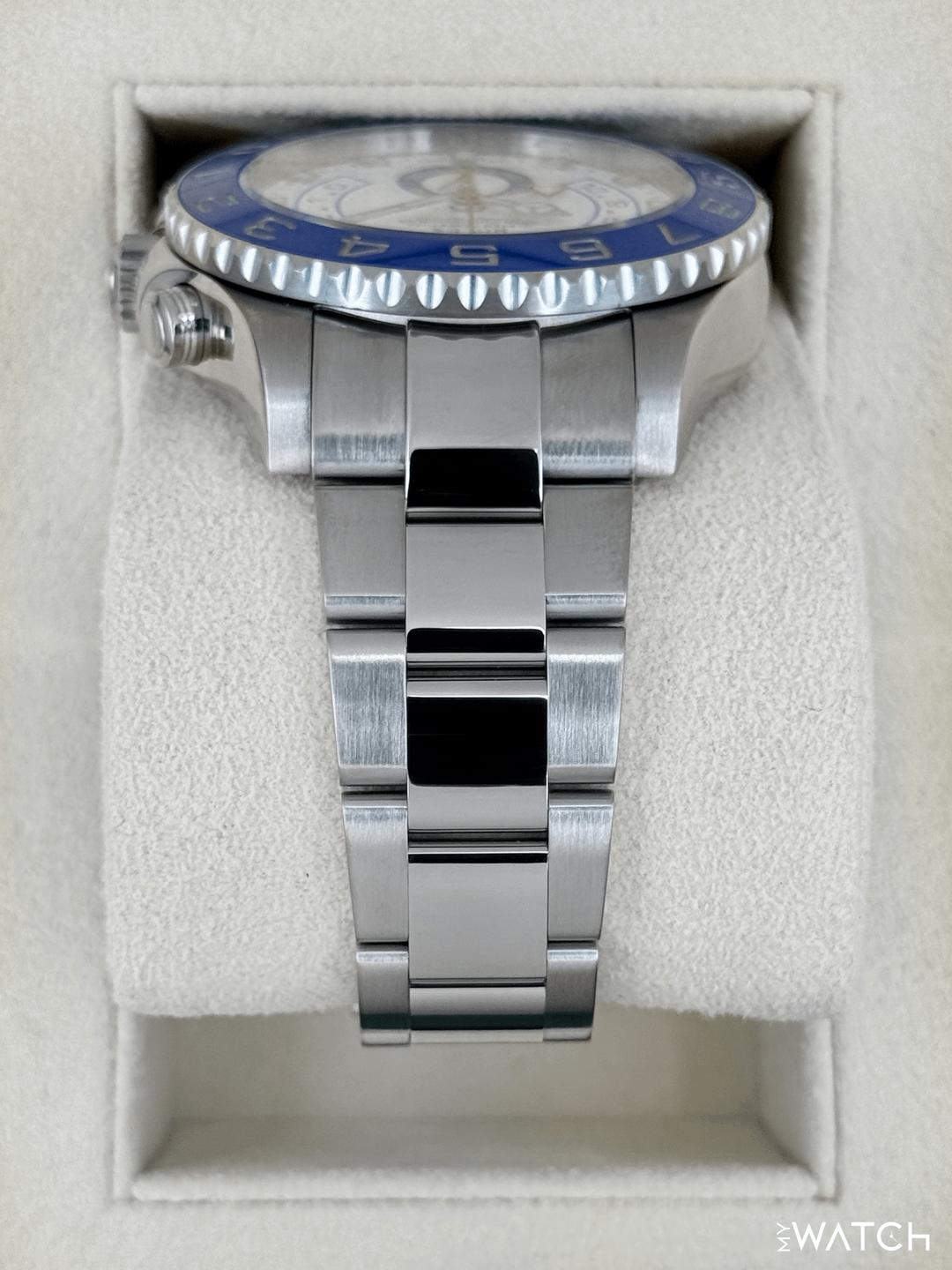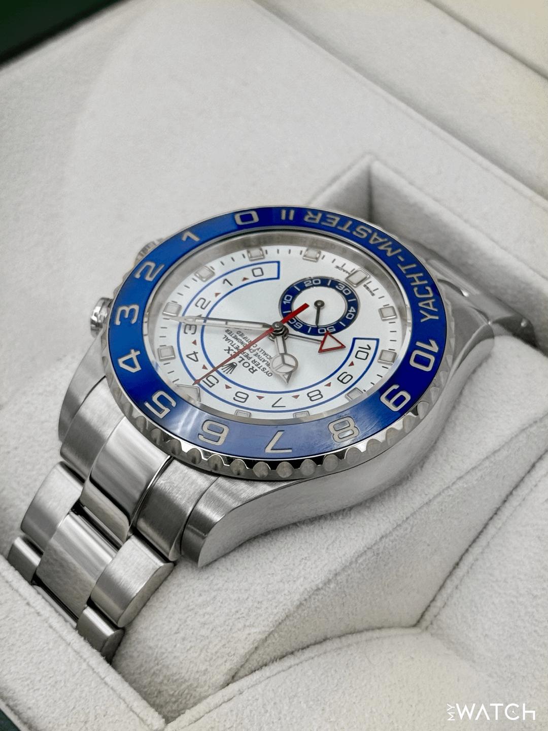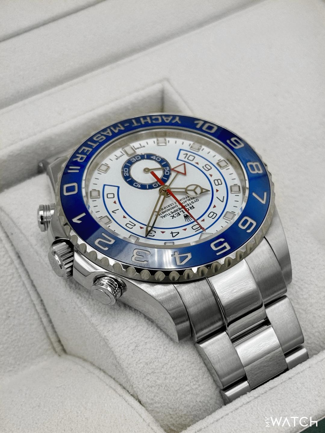 | Rolex Yacht-Master II 44mm BLUE HANDS White Steel Ceramic Regatta 116680 Watch tailoredtimepieces (303) |