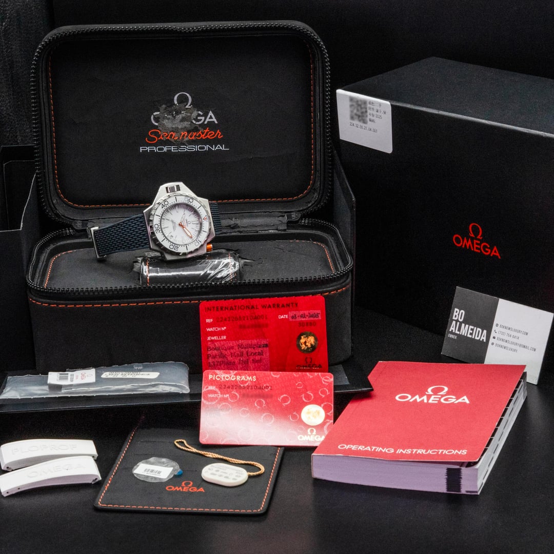 [https://www.dropbox.com/scl/fo/24vo0y625l2jy13mdtoi1/AD1xiKoLn1kURKmUhdIvwv4?rlkey=j1tx3wt7rspfs09b9g3smurbq&st=p881fz19&dl=0](https://www.dropbox.com/scl/fo/24vo0y625l2jy13mdtoi1/AD1xiKoLn1kURKmUhdIvwv4?rlkey=j1tx3wt7rspfs09b9g3smurbq&st=p881fz19&dl=0) **OM SEAMASTER PLOPROF 1200M 224.32.55.21.04.001 STEEL WHITE DIAL 55MM - BOX AND PAPERS** **.** Here is a beautiful example of one of the hottest Seamaster Ploprof references available. The combo of the white dial and fully lumed, sapphire capped bezel is an awesome look with a ton of presence on the wrist! This piece comes as a full set with two factory straps, and full factory warranty! . * **Reference: 224.32.55.21.04.001** * **55 x 48mm stainless steel case** * **Calibre 8500, automatic, Co-Axial, 60 hours power reserve** * **MSRP: $9,400 plus tax** **.** ***Contents*****:** Watch, double box set, 2025 warranty card, manual, and 2x OEM straps on branded deployant clasp. ***Factory warranty is valid on this watch until 02/3030!*** . **Condition:** Very good pre owned condition with light wear on the case, bezel, straps, and clasp. Inner and outer box set shows wear / fraying. This timepiece has been professionally pressure-tested and thoroughly validated to confirm all functions operate within factory specifications. . ***Price: $7,925.*** *Fully insured overnight shipping included in the US. Payment accepted via:* * *Bank Wire* * *Zelle* * *All major credit cards* . Please message me directly to confirm availability before marking sold! USAF veteran owned company with hundreds of successful deals done, and plenty of references available to any interested buyers. Thanks for looking! 🙏