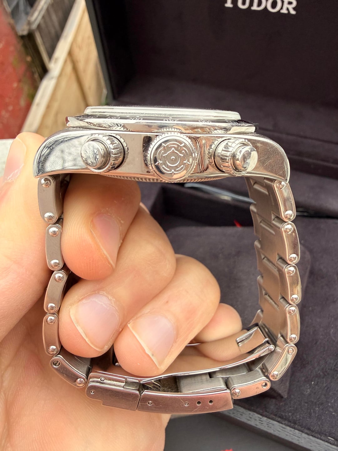 Welcome to Starry Seconds! Please feel free to also check out our other listings! PLEASE COMMENT BEFORE PM. Condition: Good — light wear consistent with regular use and crystal is clean. Runs very well, and warranty card is stamped July 2023. The dial is gorgeous and the pictures don't do it justice, the chrono complications all work well and the fully linked bracelet plays with the light beautifully. The watch has minor scratching throughout, but it is priced well below the $6650 retail price. This watch is stunning and the 41mm case with the bracelet has a beautify presence. Tudor’s in-house Caliber MT5813 is a COSC-certified chronometer with a 70 hour power reserve that is known for its reliability and accuracy. The watch appears unpolished and comes with the box, papers, and a fully linked bracelet. Asking $3300 OBO USD SHIPPED through paypal FF or Zelle. CONUS ONLY, which is cheaper than comps.