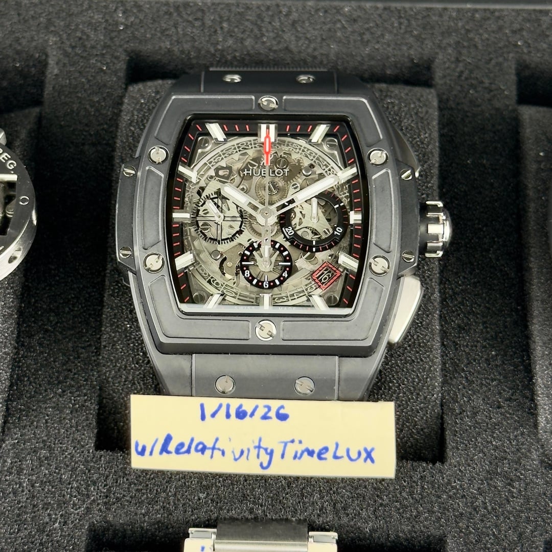 **Key Details:** * **Condition**: In very good condition, rated at 9.8/10. See detailed photos for full transparency. * **Included**: Inner & outer Hublot boxes and warranty card. * **Reference**: 641.CI.0173.RX **Asking**: 13150 **Trades Welcome** RelativityTimeLux All pics -> [https://imgur.com/a/hublot-spirit-of-big-bang-vF90lUy](https://imgur.com/a/hublot-spirit-of-big-bang-vF90lUy) Timestamp -> [https://imgur.com/1Y4MNzc](https://imgur.com/1Y4MNzc)
