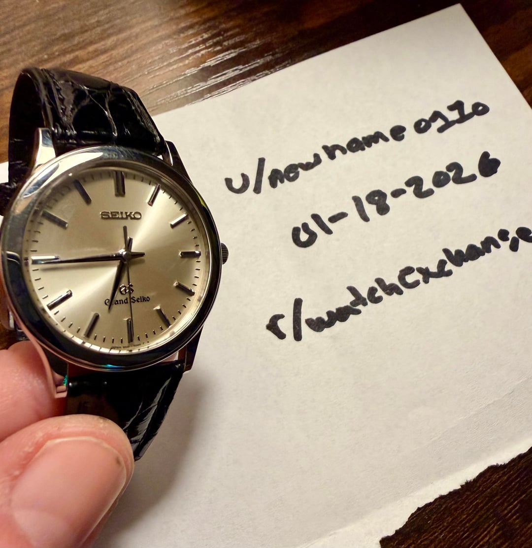 Offering here a JDM-only Grand Seiko SBGS009, featuring the GS 9581 high-accuracy quartz movement, Zaratsu polished case/markers and a classic silver sunburst / champagne-toned dial. This is an uncommon reference, rarely seen for sale in the US. Watch is in TX, USA right now and priced “all-in”, shipping included. _____ My experience: This is an exceptional dress-focused Grand Seiko timepiece. At approximately 36mm diameter (inclusive of the crown.) and just ~7mm thick, it wears incredibly light and elegant on the wrist. I have a 6.75in wrist and this watch just melts right into it as you can see in the wrist shot. The no-date layout keeps the dial perfectly balanced, and the HAQ movement has been nothing short of flawless — this watch has not drifted even one second during my ownership. ⸻ Details •Reference: Grand Seiko SBGS009 (9581-7020) •Movement: Grand Seiko 9581 High Accuracy Quartz (rated ±10 sec/year) •Case: Stainless steel •Crystal: Sapphire •Dial: Silver sunburst featuring a subtle champagne hue with Zaratsu polished markers and applied indices all the way around. •Functions: Time only, no date •Size: ~34.5mm case × ~7mm thick. Lug to lug is -38mm •Strap: Black crocodile leather strap (generic) with original GS signed clasp •Accessories: Double boxed in OEM inner & outer green Grand Seiko branded boxes, with original watch pillow, matching microfiber cloth and original instruction manual. ⸻ Condition Excellent to near mint condition. Very lightly worn and presents extremely well. Crystal, case, indices, crown, GS buckle and dial are all excellent. The watch is keeping outstanding time, exactly as expected from a GS HAQ. No functional or cosmetic issues whatsoever. ⸻ 📍 Location: Dallas, TX 💰 Asking: $925 shipped to CONUS - reasonable offers are welcome. NO TRADES. 💳 Payment: PayPal F&F or Zelle 📦 Shipping: Included to CONUS. Happy to provide additional photos, video, or timestamps on request.