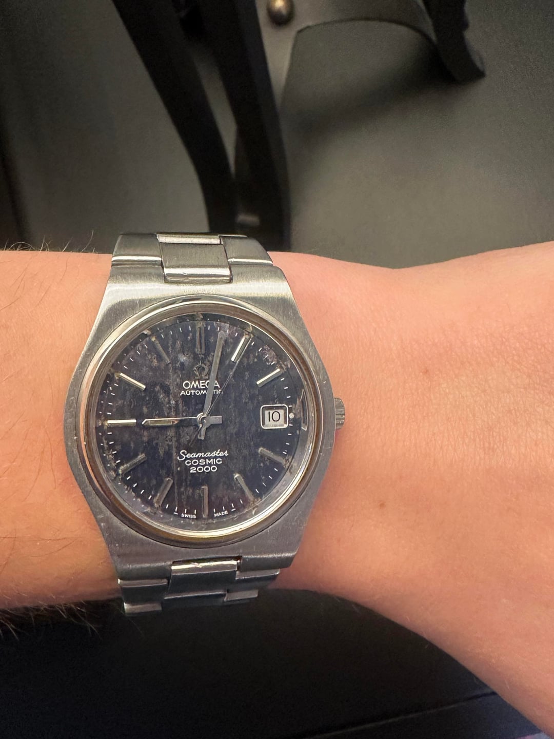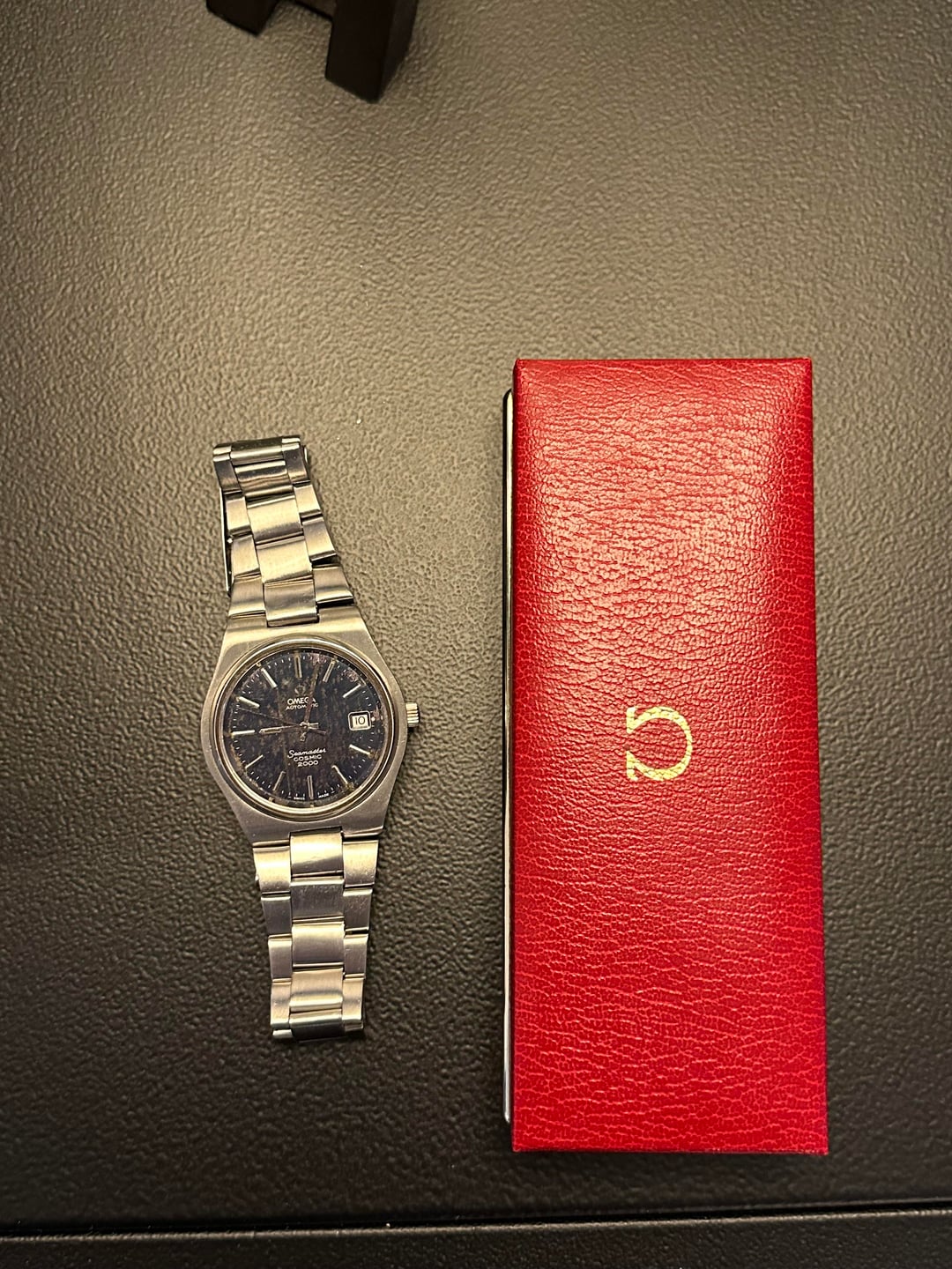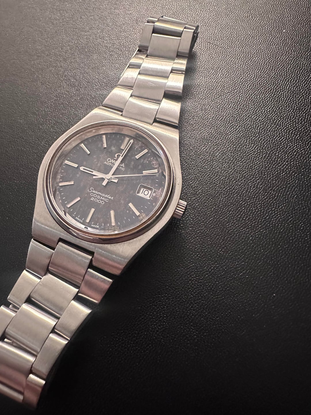 Up for sale or trade today is an Omega Seamaster Cosmic. Ref 166.135. This particular unit is unlike any one I’ve ever seen. Always been a passive admirer of these references because of their sleek design and rare (albeit polarizing at times) 1012 automatic movement. This particular unit really caught my eye because of the awesome patina on the dial giving it that ultra cool tropical look. Watch hails from the mid 70s. All parts are the original and it has recently been cleaned and serviced (runs really well). Comes with its original box but no papers. Bracelet is full size and should fit up to 9 inch wrist. Condition is really good especially given the age. Asking for $1,999. Open to trades for Tudor, Traska (+cash), omega, zenith, bremont, norqain, or an equivalent brand