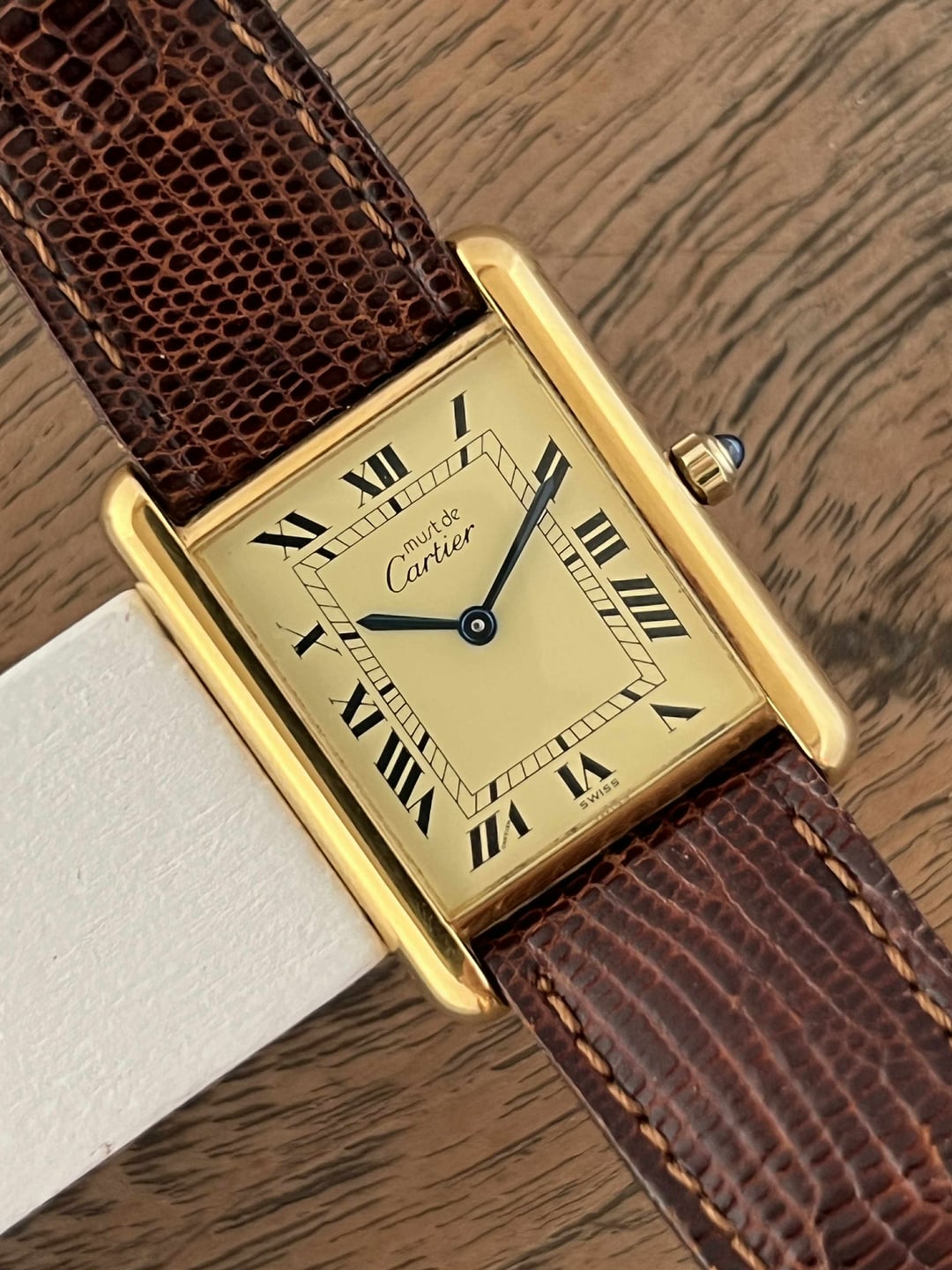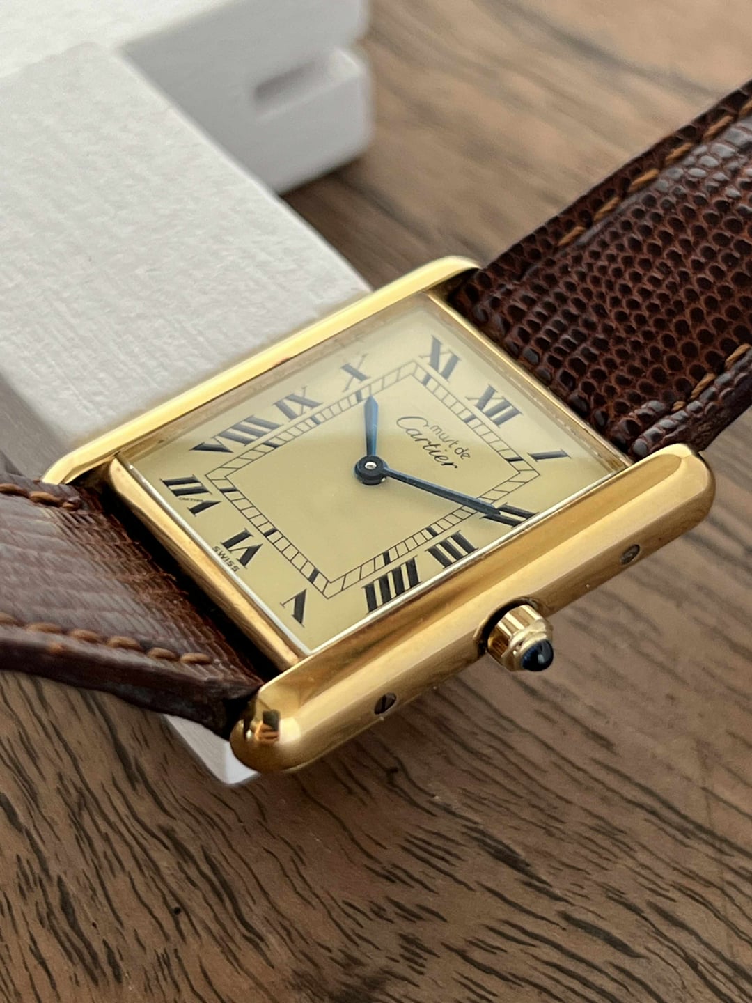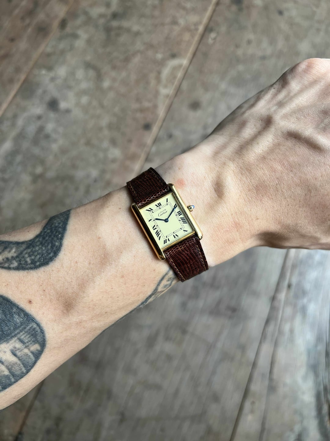**Hello WatchExchange,** for the second individual post after the megapost, I'll be showcasing this large classic tank vermeil. **For reference, I am a 7" wrist.** **Please note that the lighting used to photograph these watches was intentionally chosen to highlight the wear and does not reflect how the watches will look on wrist. The watches will typically look much better in softer lighting.** As always, I will be as transparent and straightforward as possible with potential buyers. If you have any questions, please feel free to message me. I'm always happy to chat! For references, please message. **Details:** Price: $2500++ 23x30mm case. Movement in excellent condition. Quartz movement. Case with maybe a hairline scratch at best if scrutinized. The caseback is in similar condition. Crystal without any damage to note. Dial without damage to note. On its original Cartier lizard leather strap with a Cartier gold plated tang buckle. Strap with little to no wear. Will fit most wrist sizes as is. Watch and papers. There is a discrepancy on the papers which could be a mistake by Cartier. The reference is correct, as is the last 4 digits of the serial, however the first digit on the paper is a "4" but on the watch is a "1". Regardless of this, the watch has been authenticated and the papers will be included in the sale. **Payment & Shipping** Please note that the final price will include $50 for shipping and an addition 3.5% for the invoice fees from PayPal. I strive to bring competitive prices but due to the nature of tariffs and greatly increased import costs, all of my prices have recently gone up. I ship expressed from Bangkok, Thailand. Parcels are marked down and declared as gifts. Over 75+ watches safely delivered worldwide without import issues. PayPal invoices are my go-to for payments. Thank you for looking! \- Tiger