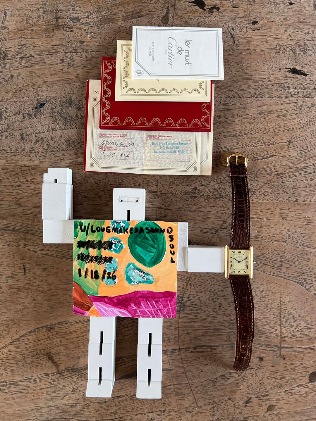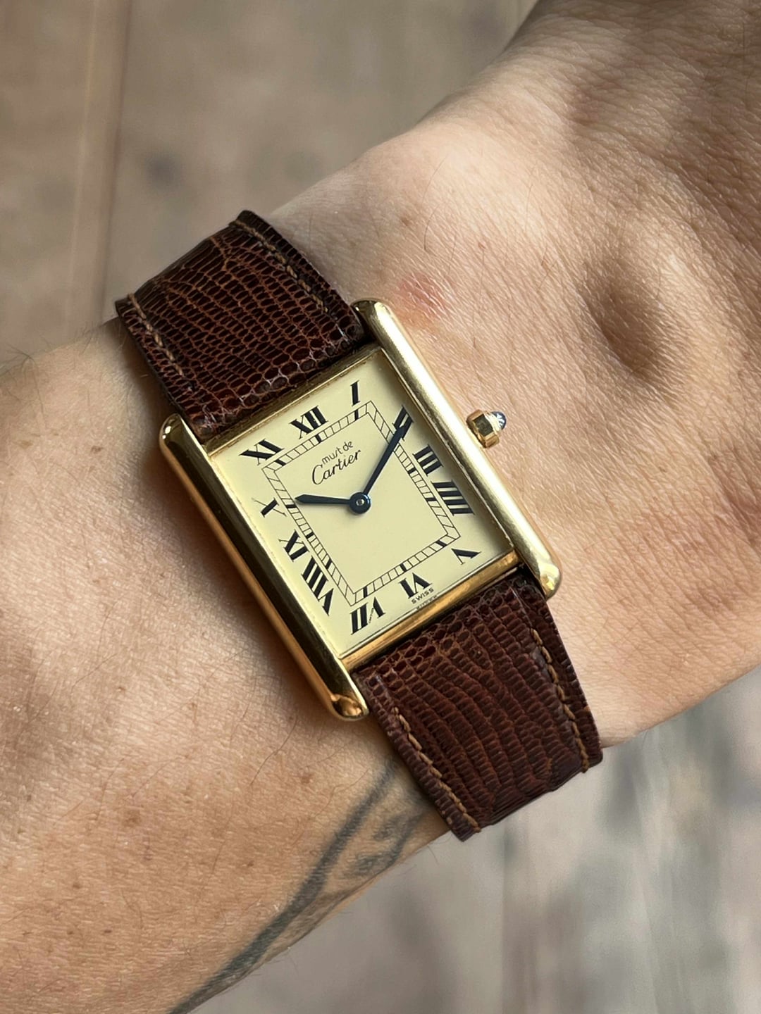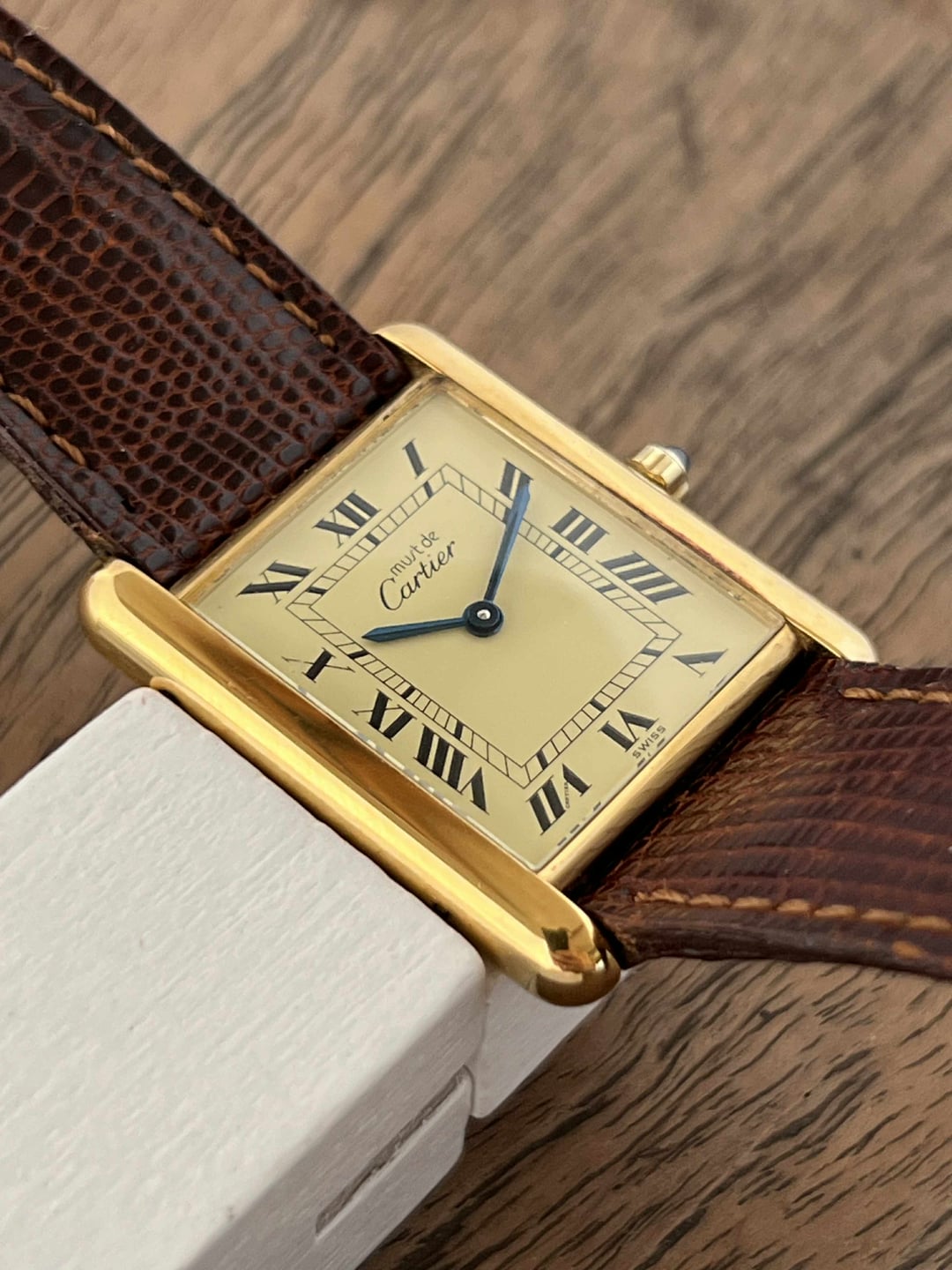 **Hello WatchExchange,** for the second individual post after the megapost, I'll be showcasing this large classic tank vermeil. **For reference, I am a 7" wrist.** **Please note that the lighting used to photograph these watches was intentionally chosen to highlight the wear and does not reflect how the watches will look on wrist. The watches will typically look much better in softer lighting.** As always, I will be as transparent and straightforward as possible with potential buyers. If you have any questions, please feel free to message me. I'm always happy to chat! For references, please message. **Details:** Price: $2500++ 23x30mm case. Movement in excellent condition. Quartz movement. Case with maybe a hairline scratch at best if scrutinized. The caseback is in similar condition. Crystal without any damage to note. Dial without damage to note. On its original Cartier lizard leather strap with a Cartier gold plated tang buckle. Strap with little to no wear. Will fit most wrist sizes as is. Watch and papers. There is a discrepancy on the papers which could be a mistake by Cartier. The reference is correct, as is the last 4 digits of the serial, however the first digit on the paper is a "4" but on the watch is a "1". Regardless of this, the watch has been authenticated and the papers will be included in the sale. **Payment & Shipping** Please note that the final price will include $50 for shipping and an addition 3.5% for the invoice fees from PayPal. I strive to bring competitive prices but due to the nature of tariffs and greatly increased import costs, all of my prices have recently gone up. I ship expressed from Bangkok, Thailand. Parcels are marked down and declared as gifts. Over 75+ watches safely delivered worldwide without import issues. PayPal invoices are my go-to for payments. Thank you for looking! \- Tiger