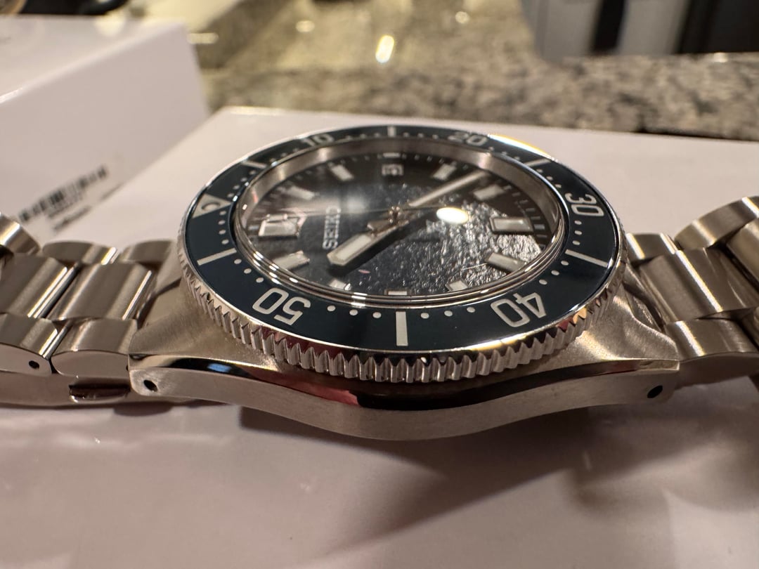 For sale is a Seiko Prospex 1965 Heritage Diver - SPB421 - Alaska Moulins Stainless Steel with curved sapphire crystal with AR coating on inner surface, 200 meter WR, with bracelet (20mm lug width) Very cool looking deep blue textured dial that is patterned to evoke the icy surface of the Alaska Moulins. CASE DIMENSIONS: THICKNESS: 13.2mm DIAMETER: 40.5mm LENGTH: 47.6mm MOVEMENT: Caliber 6R35 21,600 vibrations per hour 24 jewels Power reserve: approximately 70 hours CONDITION: Excellent condition, purchased 8/12/25. Three year Seiko warranty is transferrable. Bracelet was rarely worn with it as I had it on strap most of the time. I like the watch a lot, but it had taken a backseat to some others and didnt get as much wrist time lately. Price: $800 USD. Insured Ground shipping included through UPS within CONUS. PayPal FF or Venmo only. Please ask for more photos or videos.