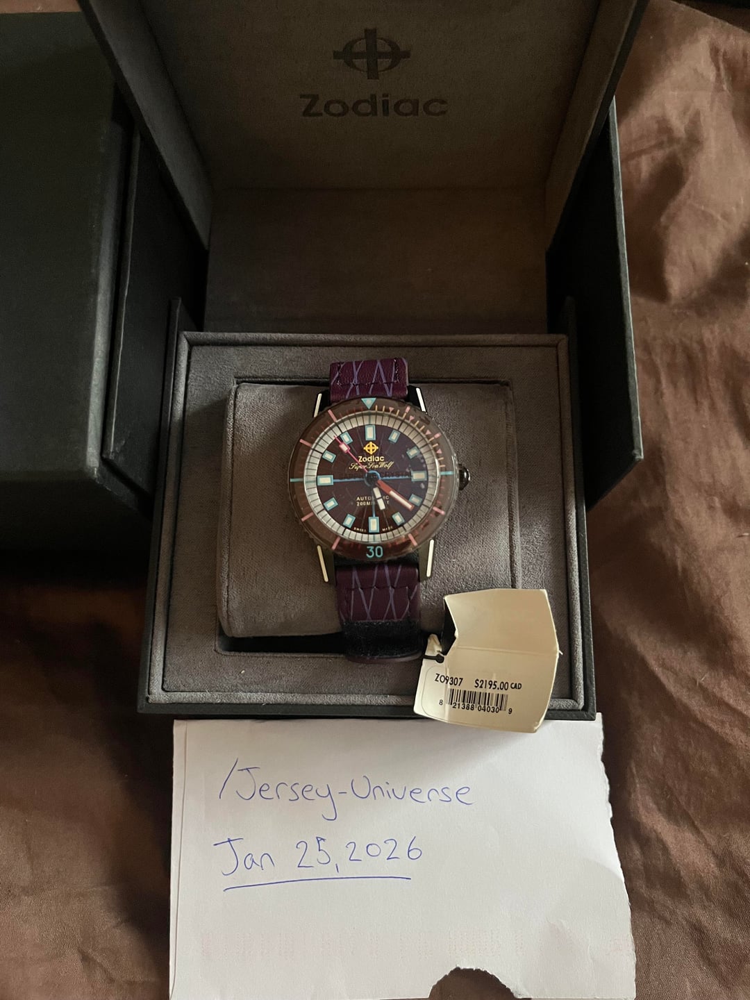 Timestamp: https://imgur.com/a/yCesFgf Album: https://imgur.com/a/PMXoAy1 Zodiac Super Sea Wolf “Laser Tag” Limited Edition ZO9307 – Brand new/unworn, full set with box + papers/booklet + hang tag (MSRP tag $2,195 CAD still attached). Asking $750 obo. Open to sale or trades — feel free to message with offers.