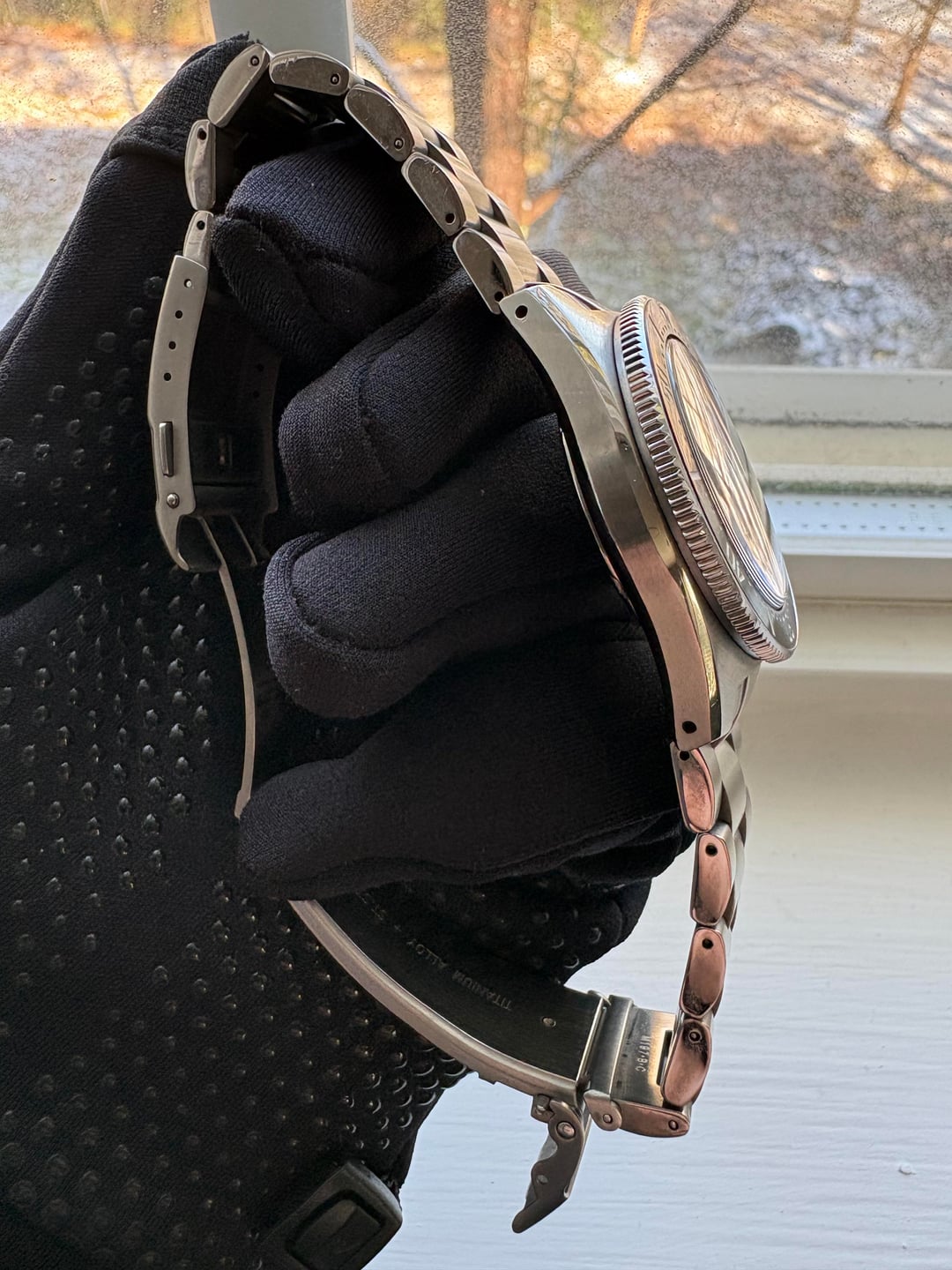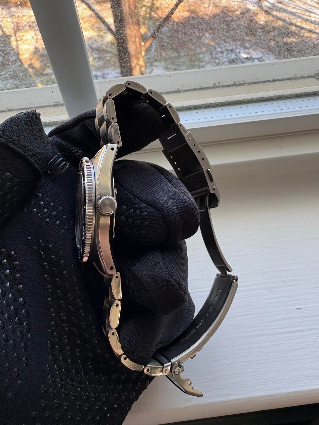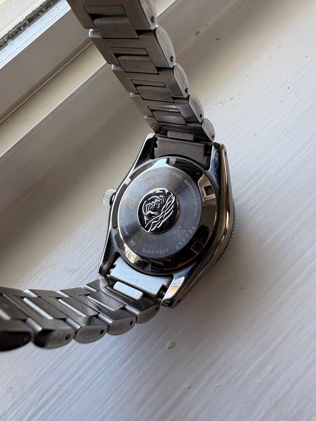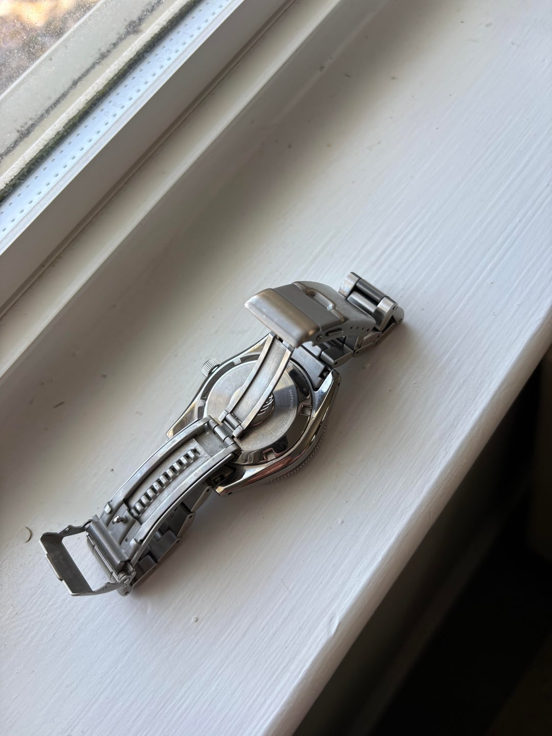 For sale is my Seiko SPB143 (first generation), a highly regarded modern Seiko diver with classic proportions and excellent wearability. The watch is currently fitted with a Seiko MarineMaster quick-adjust clasp (≈$100 upgrade), which greatly improves on-the-fly comfort. The original clasp and a spare bracelet link are also included. Condition: Very good overall condition with normal light wear from use. Crystal is clean and the bezel is properly aligned. Timekeeping is currently approximately ~20 seconds per day slow, and the hands show slight misalignment (common and correctable during service). This has not affected functionality. It was worn very sparingly in a larger rotation, so the timekeeping variance did not bother me. The watch has not been serviced to address this. Bracelet is currently sized for approximately a 7.5” wrist; spare link included. Included: • Seiko SPB143 (1st gen) • MarineMaster quick-adjust clasp (installed) • Original Seiko clasp • Spare bracelet link Price: 💰 $775 USD — includes shipping to CONUS Payment via PayPal (FF preferred; GS ok for established members at buyer’s expense). Happy to provide timestamp, additional photos, and happy to video call to verify. Thanks for looking!
