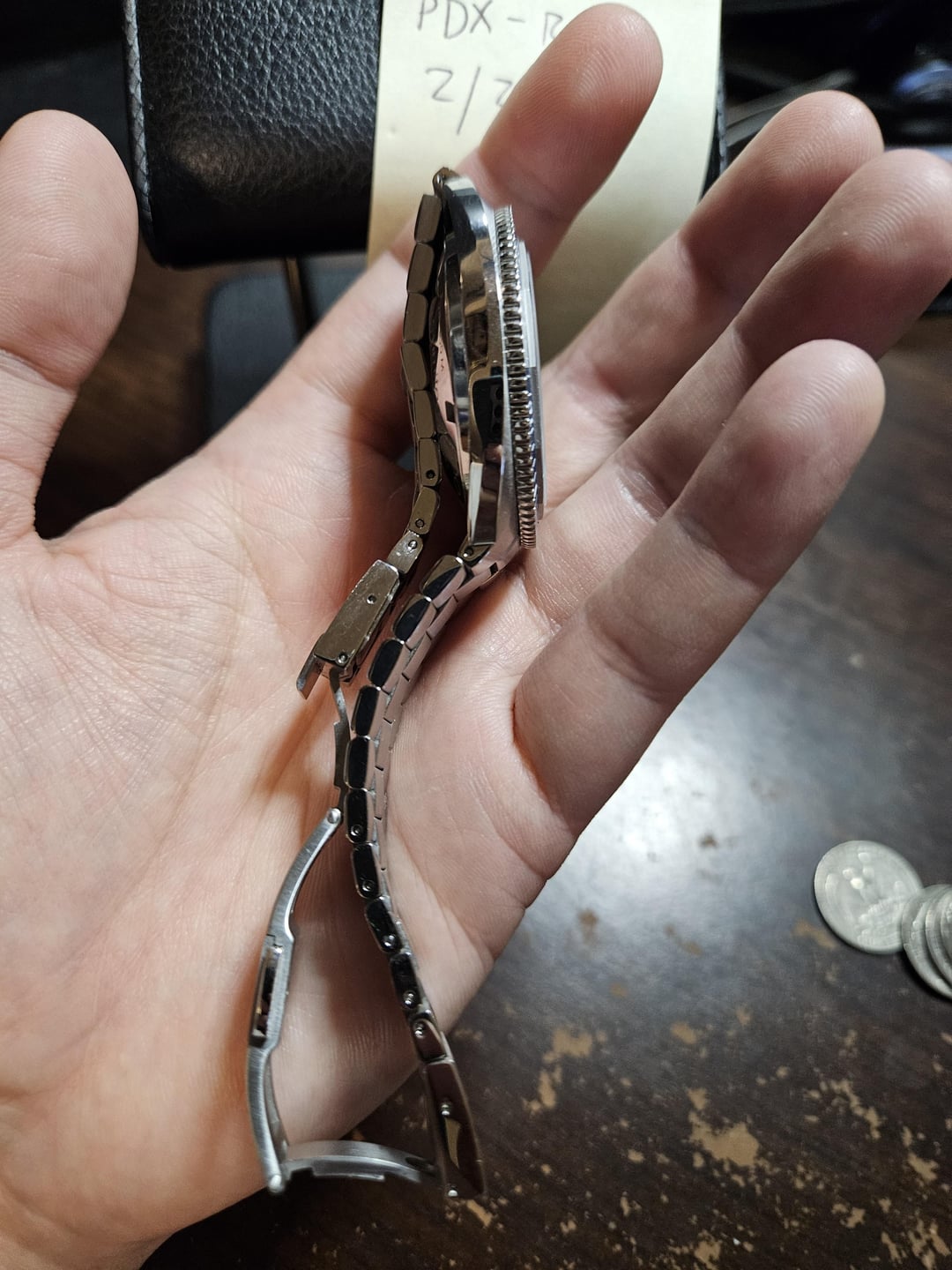 This one hurts to sell, but I need to consolidate and I have too many blue dial watches. 1st owner. Bought it at the end of June 2024. I've worn the watch maybe 20 times? Probably less. Some micro scratches on the clasp and like 3 of the links. Very minor micro-scuffing on the edge/corner of the clasp on one side. I can't get it to show in the photos, you really have to be looking at it in the right light to see it. I'm the first owner and have worn it about a dozen times total. Light hairline scratches on the clasp and like 2 of the links. I tried to capture it in the photos. Bracelet has a fold out divers extension on both sides of the clasp. It's a 42mm, but wears smaller due to the short Lug to Lug. I have a 6.5" wrist and think it wears great. No issues with the watch, keeps time within spec. Edox Hydrosub 42mm diameter 45mm lug to lug 20mm lugs 12.5mm thick COSC certified SW-200 movement 30 ATM water resistance I've had it on the winder for 4 days and it lost 7 seconds total, so we'll within COSC spec. https://www.edox.ch/product/hydro-sub-date-automatic-chronometer-80128-3bum-buio/ Asking $625 shipped. I can knock a few bucks off if you're west of the Mississippi. I take venmo, zelle, and paypal F&F. Let me know if you need more photos. No trades, CONUS only