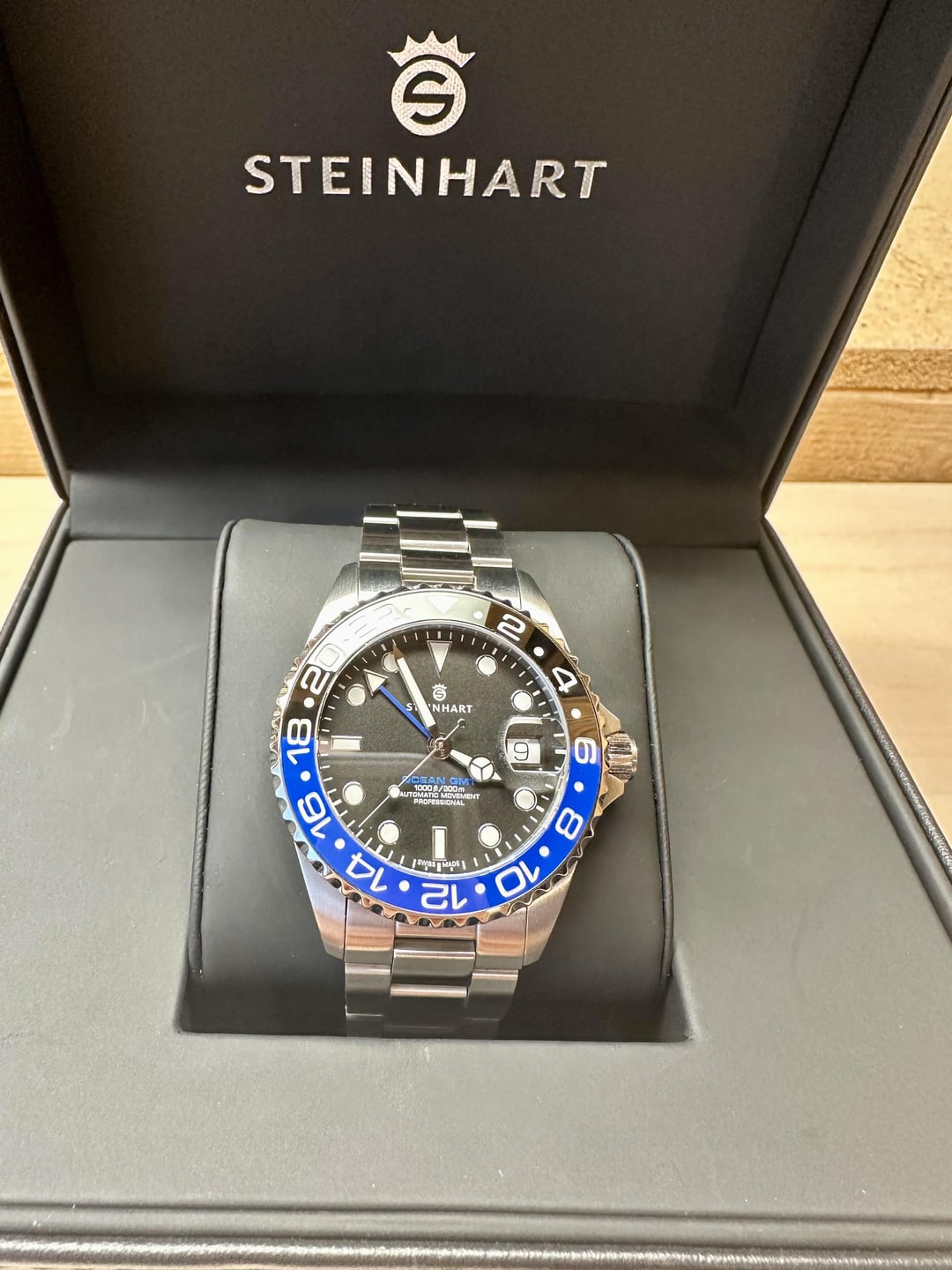 | Steinhart Ocean 39 GMT Premium 500m WR Black & Blue Automatic Diver Watch Batman markb33 (9162) |