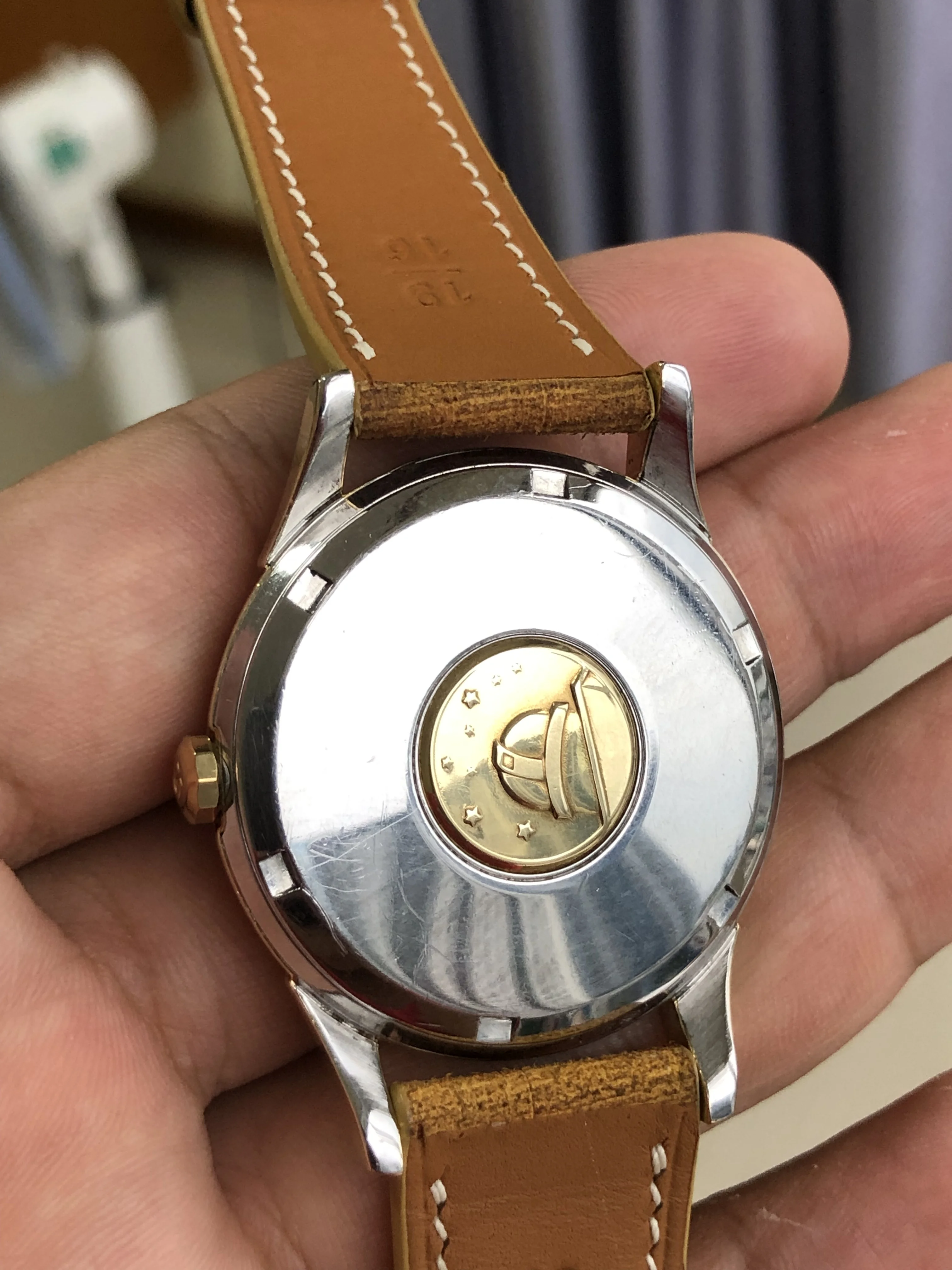 - Strap: Used handmade leather strap 19-16mm with original gold plated Omega buckle.