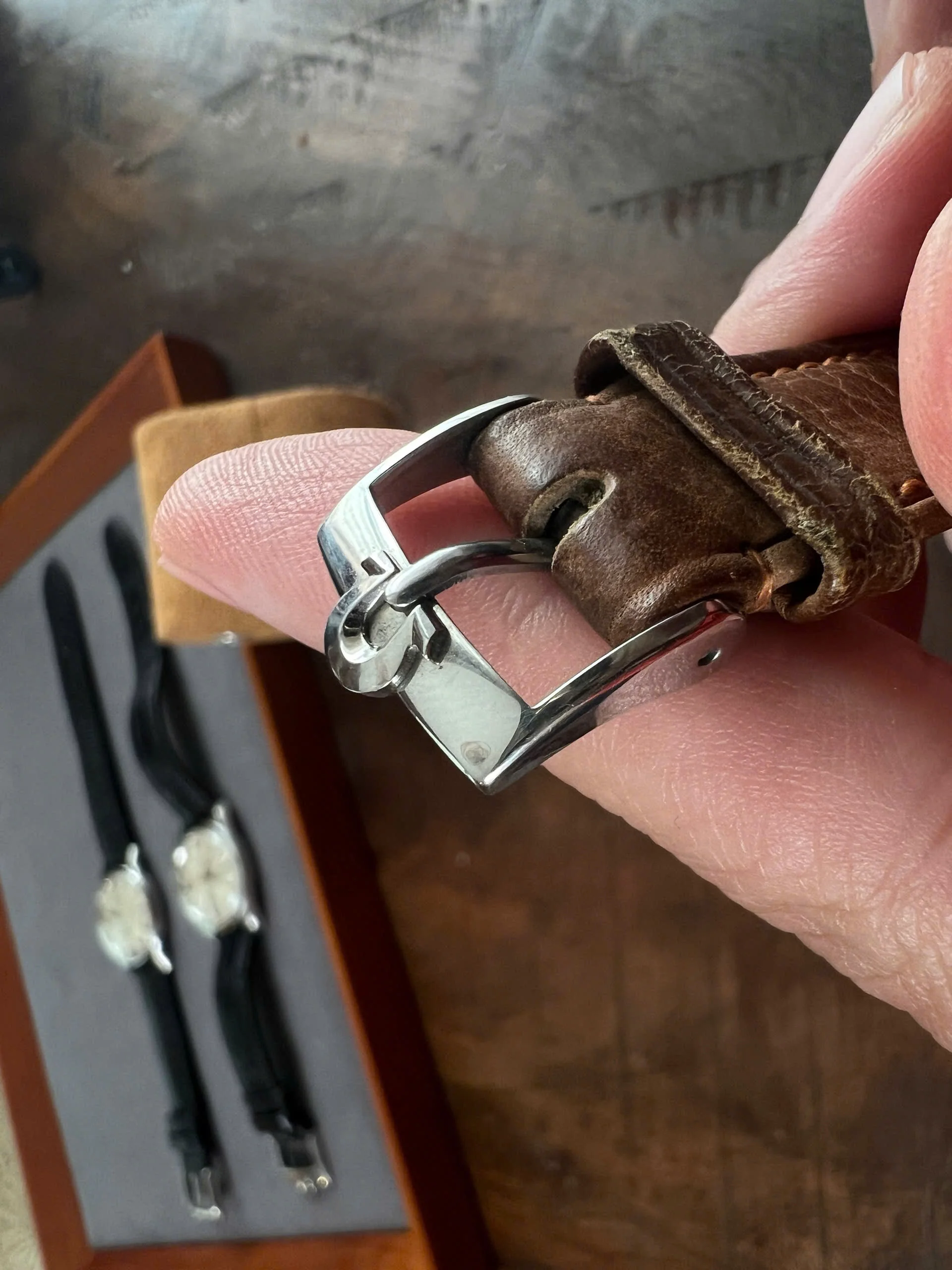 Straps: signed leather strap, though I’m not an expert on vintage straps, so the originality is unknown.