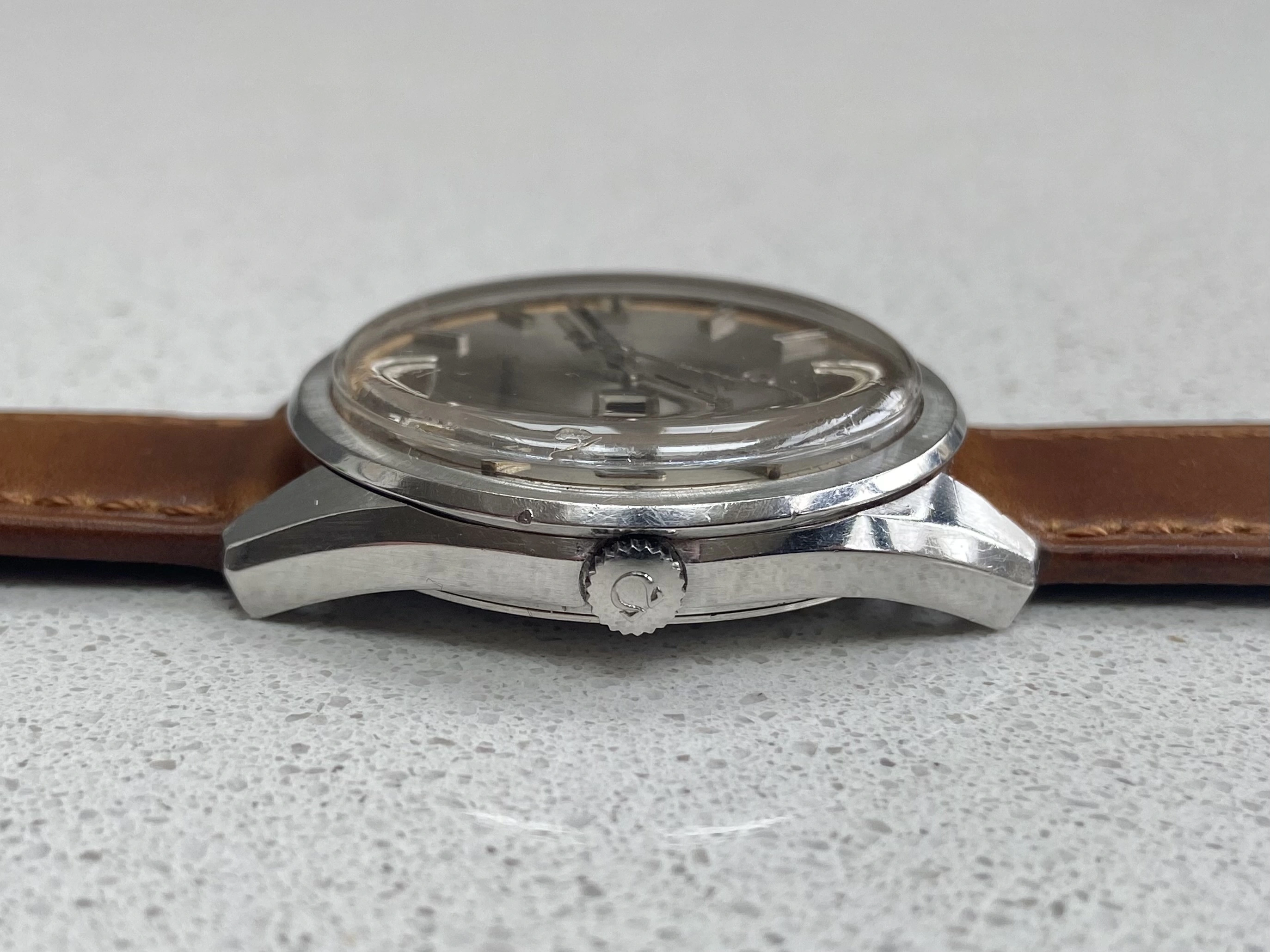 Original 36mm stainless steel case in good condition. Being one of the only 60’ Seamasters that came in 36mm, these wear really well and are notably larger than the usual 34mm Seamasters. Has been lightly polished in the past but the edges and facets are still present, along with the radial brushing to the bezel.