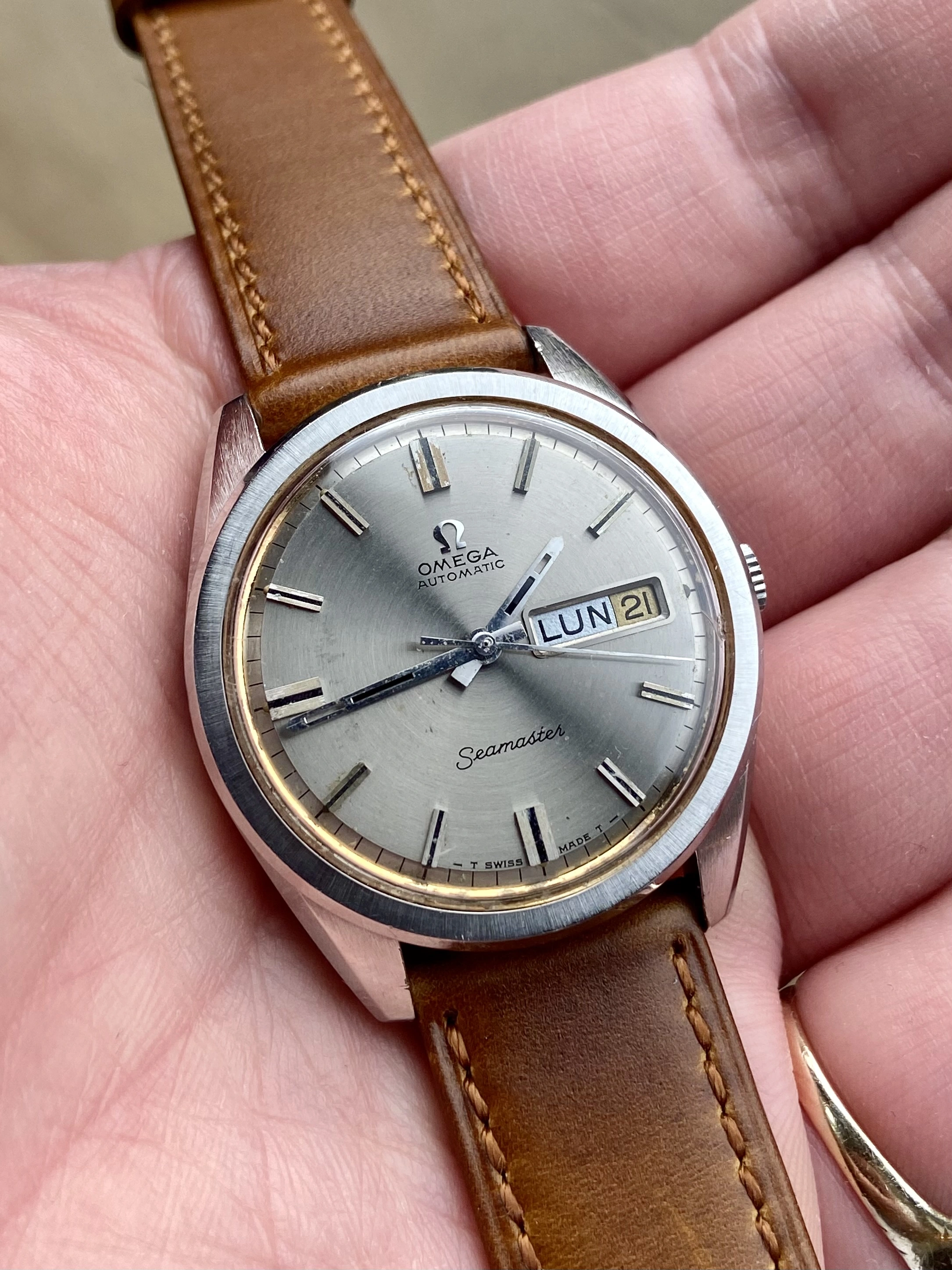 Offering for sale a vintage Omega Seamaster day date, ref 166.032. This watch has a couple of issues but is largely original and is a great opportunity to buy this reference at less than half the usual price.