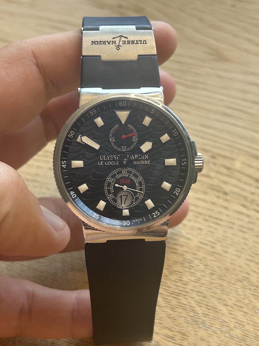 Hey [r/Watchexchange](https://www.reddit.com/r/Watchexchange/)! Today we have a lot of watch for the money 🚢 A bit of complication: here you get not just your **time**, but also the **date** and **power reserve**. Not your average find. **Ulysse Nardin Maxi Marine Blue Wave** **Reference: 263-68** **Limited to 1846 pieces** Super comfy to wear (i did wear it a lot). Very readable dial and the dial has an interesting wave pattern (please see the high res photos). Comes with the original strap. Watch only (no box/papers). If you have questions or would like more photos/videos, I'm happy to provide. 📌Location: Amsterdam, Netherlands ✈️**3900$** including overnight Fedex shipping (I cover import duties). I'm open to reasonable offers. 💵Wire (USD) or crypto (USDT) I'm a known dealer in MODA, shipped around the world, traded on reddit my first piece yesterday. my identity is known by my rich post history. Invoicing via watch in dealer in NY is possible.