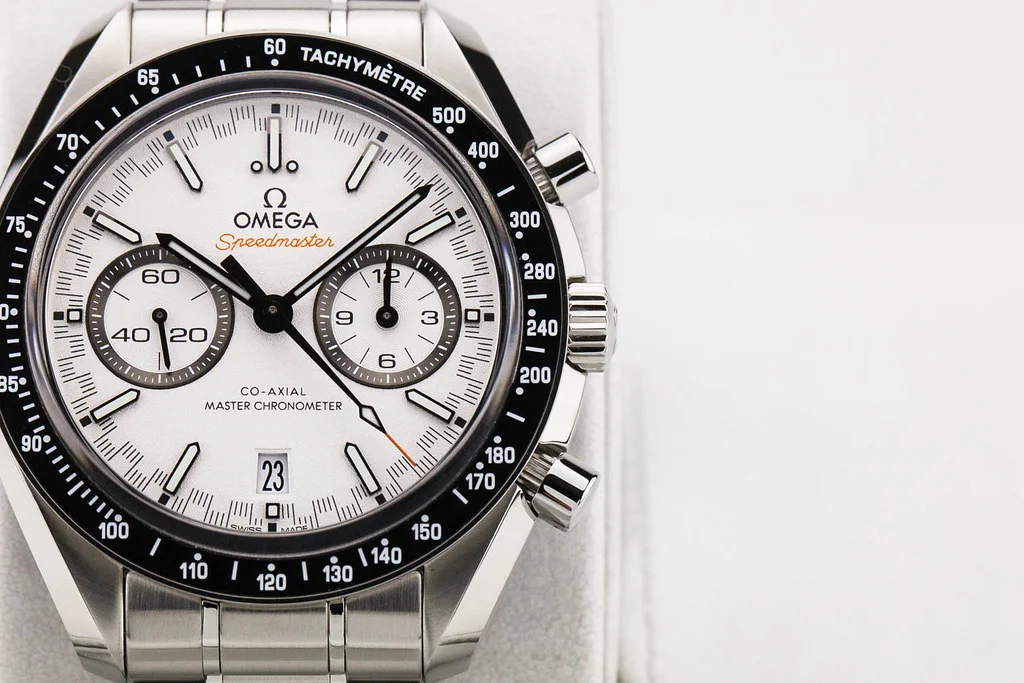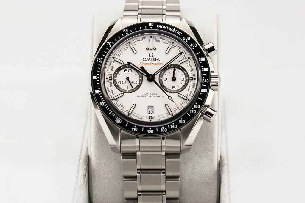 Up for sale is an excellent condition Omega Speedmaster Racing Master Co-Axial in White Dial, reference # 329.30.44.51.04.001. It comes complete with all boxes, papers, booklets, hang tag and Omega Warranty Card dated June 2024.