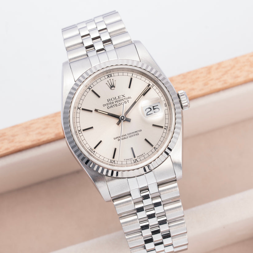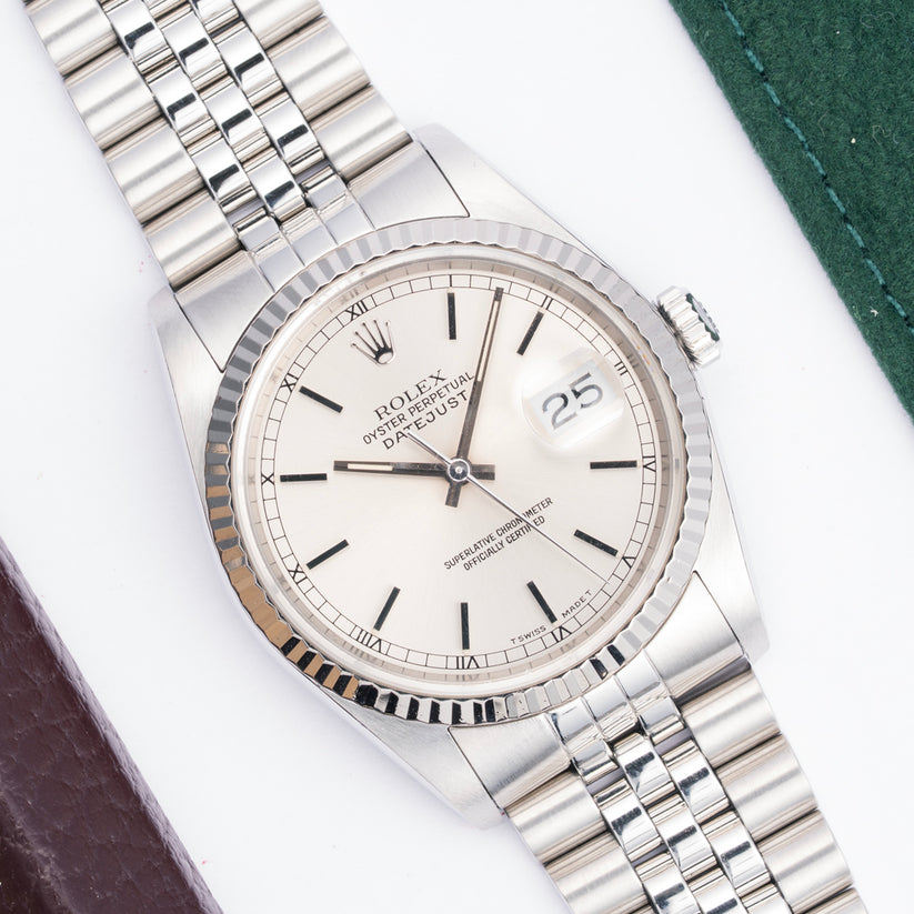 The 16234 straddles between the perfect blend of vintage and modern. The ref. 16234 was among the first five-digit offerings within the Datejust family, and importantly one of the first to also use a sapphire crystal. It also featured the jumping date and the newly updated Cal. 3135 movement.