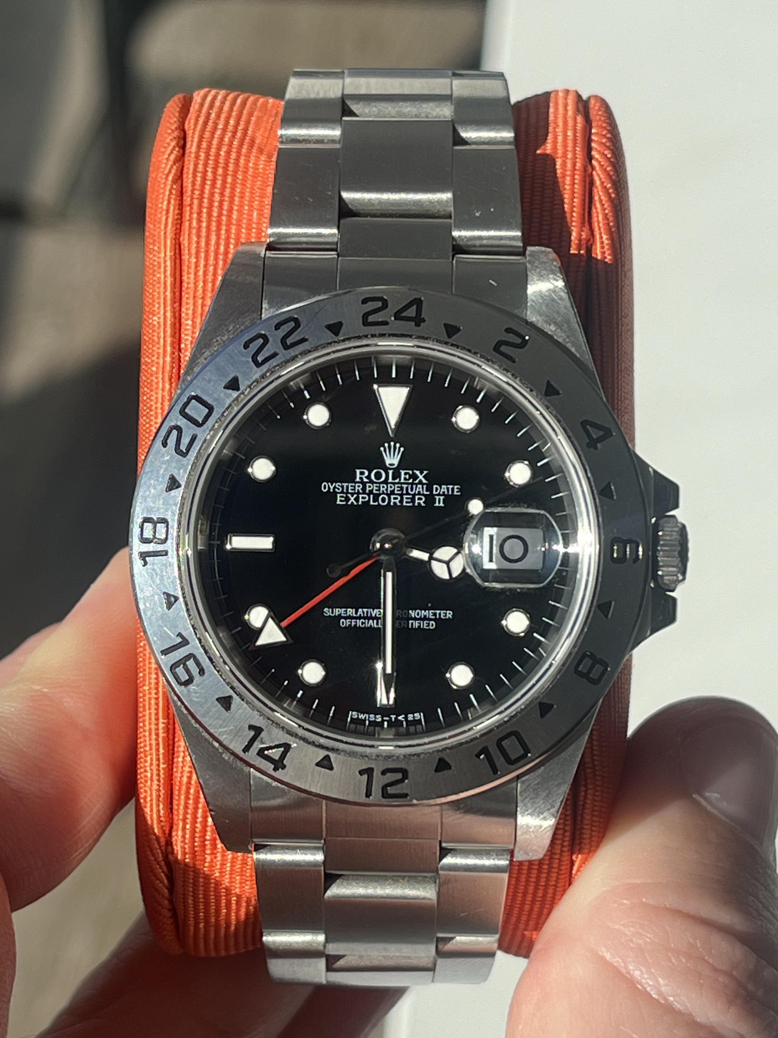 Very interested in trades up (primarily Rolex, Patek, AP) but reach out and make me an offer even if you have something different. I have cash to trade up with or other watches! This is a truly excellent condition example of this ref. Please see pictures for specifics. The watch comes watch only, however I purchased this directly from a very reputable vintage watch dealer and would be happy to provide the original invoice and records to the ultimate buyer. ROLEX Explorer II Ref. 16570, Black Dial, 1998 Circa: 1998 Reference No.: 16570 CASE: 40mm, stainless steel, 24 hour bezel, sapphire crystal with date loupe MOVEMENT: Caliber 3185, Self-winding chronometer movement, 31 jewels DIAL: Black dial with applied tritium hour markers and SWISS-T<25 at the bottom, Silver with tritium H/M/S hands and red/silver arrow shaped 24 hour hand. BRACELET: Rolex stainless steel Oyster ‘short fliplock’ bracelet 78790/501B, date code U3 Condition Report: The case appears unpolished, bevels are visible and pinholes still crisp. Dial and hands are excellent and untouched. $7500 cash shipped US only. Venmo / Zelle / PayPal FF or GS (buyer pays fees) / F2F in NYC area. If you have any specific questions don’t hesitate to ask! I’m happy to FaceTime anyone who would like to see the watch live. Cheers! [Pics/Timestamp](https://imgur.com/a/fq97HM4)