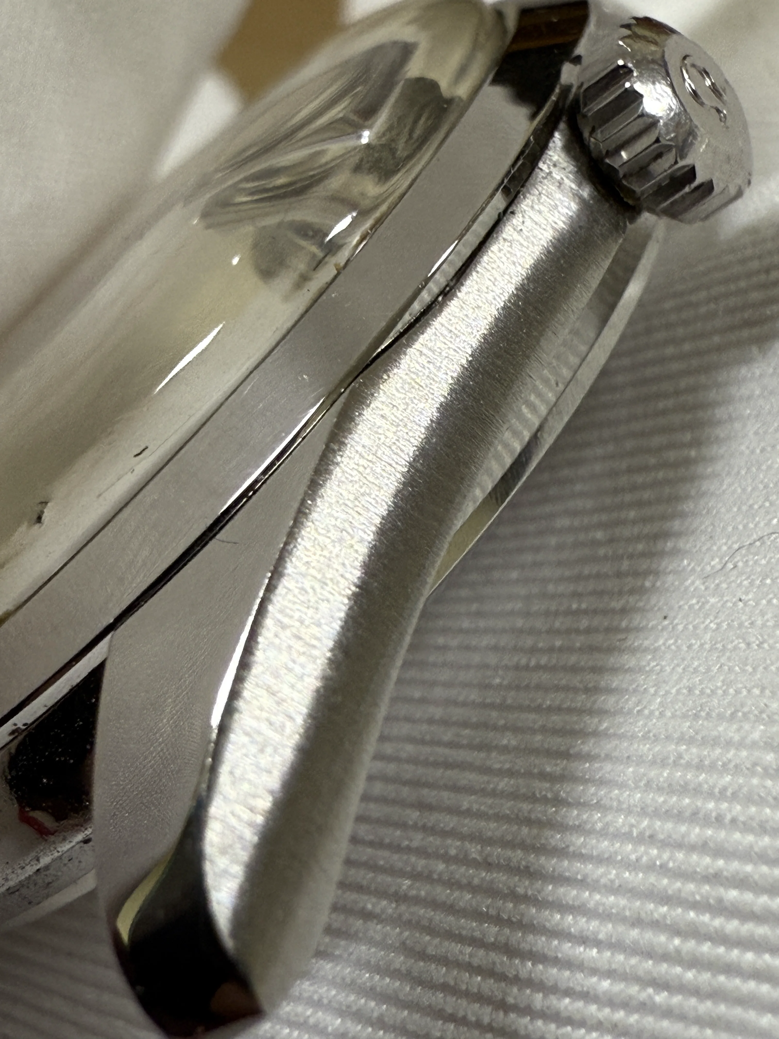 • Case: The diameter is 35mm without the crown. Original case in superb condition, razor sharp, few hairline scratches, still shining. The case back looks like it has not been opened (much) before. Original Omega knurled crown.