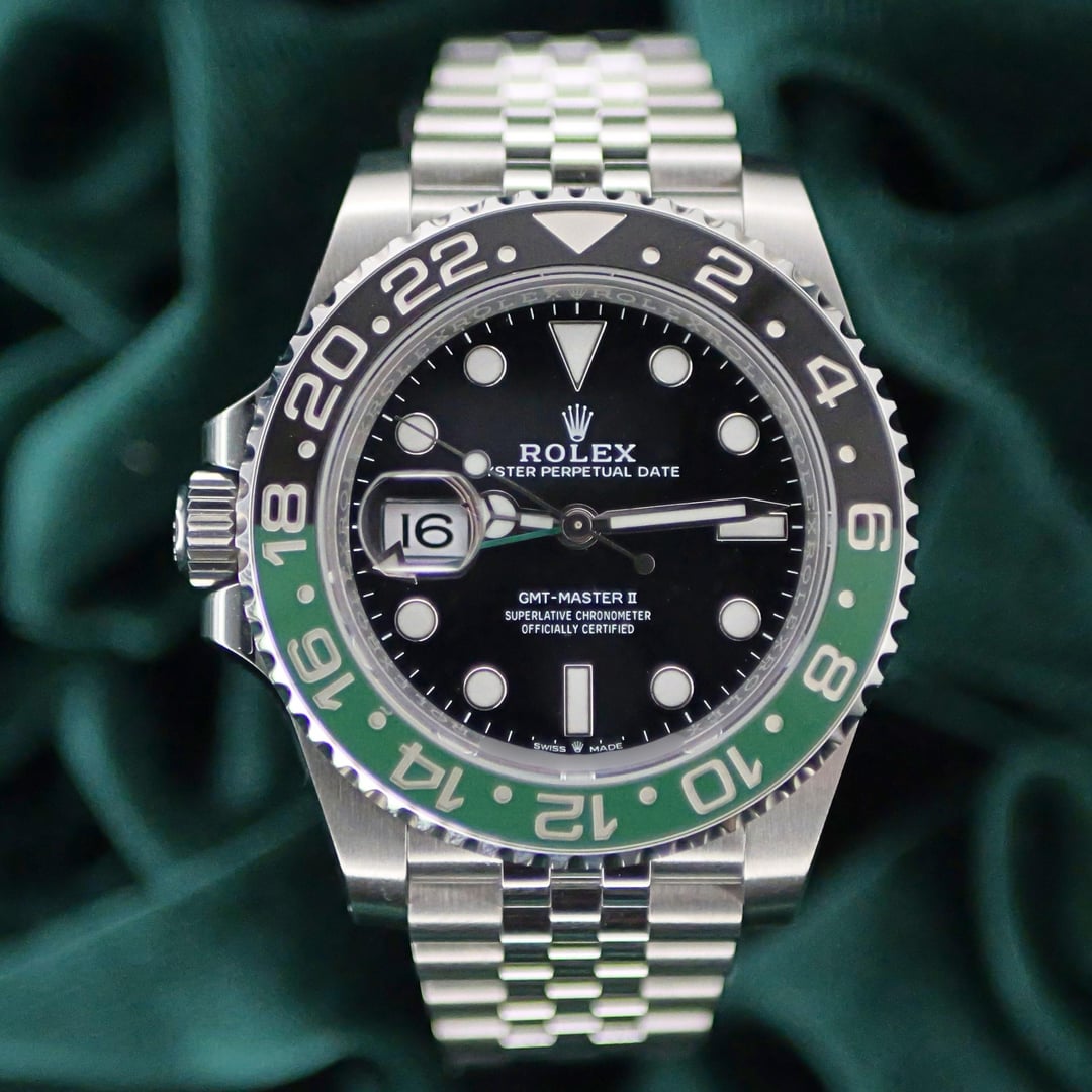 Up for sale is brand new and unworn 2025 Rolex GMT Master II “Sprite”. Nicknamed “Sprite” for its distinctive green and black bezel, this watch is reminiscent of the color scheme of the beloved soda brand. A first for the Rolex GMT-Master series, it is designed to be worn on the right hand, with the crown positioned on the left side of the case. Presents itself in brand new condition. Features a bold black dial that ensures optimal legibility with its large hour markers. Showcases a beautiful combination of polished and brushed finishes stainless steel case. Functions include hours, minutes, seconds, date and GMT. The bidirectional Cerachrom bezel allows tracking of a second time zone, working in tandem with the 24-hour hand. It also features luminous hour markers and hands to ensure exceptional readability in any lighting conditions. Comes as a full set, double-boxed, including a watch pillow, warranty card and warranty booklet in a leather card wallet, GMT Master-II manual, and the Rolex green hang tag. Designed for trailblazers and world travelers, the GMT-Master II “Sprite” breaks tradition with its unique crown and date placement on the left side, distinctive green and black Cerachrom bezel, and dual-time functionality. Whether navigating time zones or making a statement, this timepiece is built for those who move differently, setting their own course with every journey. Please excuse any dust, fur, reflections, or any other hard-to-avoid elements in the photos. We can take additional photos or videos upon request. Price: $18,185.00 shipped overnight fully insured with signature required to your nearest FedEx Office for hold/pick up. [TIMESTAMP](https://imgur.com/Qcg2AP2) [PICS](https://imgur.com/a/MOm2Y9f) Call/Txt: 626-699-3488 Email: [[email protected]](mailto:[email protected]) Looking for this watch on a different strap or a very similar variation of this watch? Send us a message and ask us! We are stocked with straps/bracelets and get new inventory everyday! How have we achieved 5 Star Ratings and 100% Feedback across all platforms? Experience the Majestix Difference: We will give you a video tour of the watch over a live video call or we can record one for you. This ensures that we have the watch in hand, ready to ship. We video record the packing process for every watch that we ship so you know exactly what to expect when you open your package. Also because insurance requires the video recording in case anything happens to the package and they need to pay out for missing / stolen packages. We send you the video recording so you know exactly what to expect when you receive the package. Check our reviews and/or ask for references regarding our quick and excellent service. High value timepieces shouldn't be shipped any slower than priority overnight. We ship priority over night via FedEx. Every package is fully insured with signature required to a FedEx Office of your choice within the continental USA. International shipping may be available depending on which timepiece you buy and which country you want it shipped to. Different countries have different maximum insurance values. Please message to be sure we can ship to your international location (insurance only covers to specific countries). We are always open to trades. Message us with possible trade-ins!
