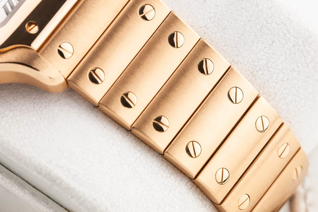 Up for sale is an unworn / like new condition Cartier Santos De Cartier Medium Size 18k Rose Gold on Bracelet, reference # WGSA0031. It comes complete with all boxes, papers, tools, OEM leather strap with gold buckle, and 2024 Cartier Warranty Card.